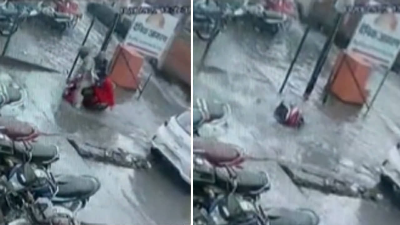 ভিডিয়োয় দেখা যাচ্ছে, আলিগড়ের রাস্তায় জল থইথই করছে। সেই জলের মধ্যে দিয়েই স্কুটি নিয়ে যাচ্ছিলেন এক পুলিশকর্মী। স্কুটির পিছনে বসেছিলেন তাঁর স্ত্রী। স্কুটি নিয়ে একটি গলিতে ঢুকতে যাওয়ার সময়ই নর্দমায় ঢুকে গেল স্কুটি। নিয়ন্ত্রণ হারিয়ে পড়ে গেলেন ওই পুলিশকর্মী ও তাঁর স্ত্রী। তা দেখেই সঙ্গে সঙ্গে ছুটে আসেন, আশপাশে দাঁড়িয়ে থাকা লোকজন। তাঁরা এসে ২জনকে উদ্ধার করেন। জানা গিয়েছে, চোট লাগায় তাঁদের ২ জনকে হাসপাতালে পৌঁছতে সাহায্য করেছিলেন স্থানীয়রা।