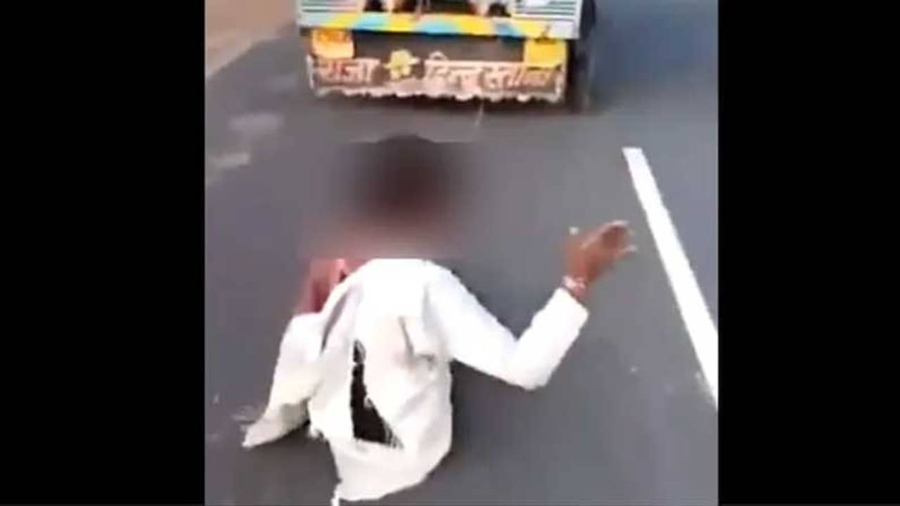 मृतक को चोरी की शंका पर बुरी तरह से पीटने के बाद उसे एक वाहन से बांधकर निर्दयता से घसीटा गया, जिससे उसकी मौत हो गयी ? pic.twitter.com/96r1zUQBDs