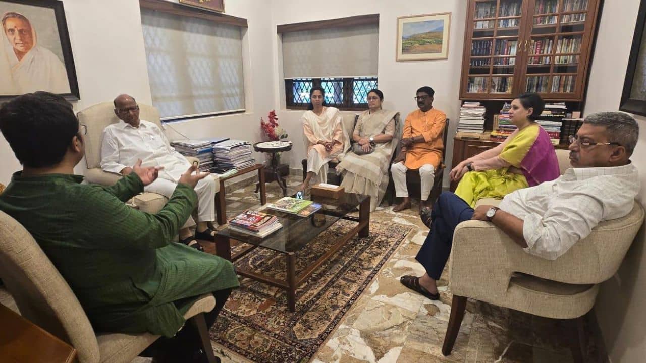 Maharashtra | TMC, UBT and NCP leaders met NCP-SCP chief Sharad Pawar at his residence in Silver Oak, in Mumbai, ahead of meeting the SEBI chairman to complain about manipulation in the stock market.