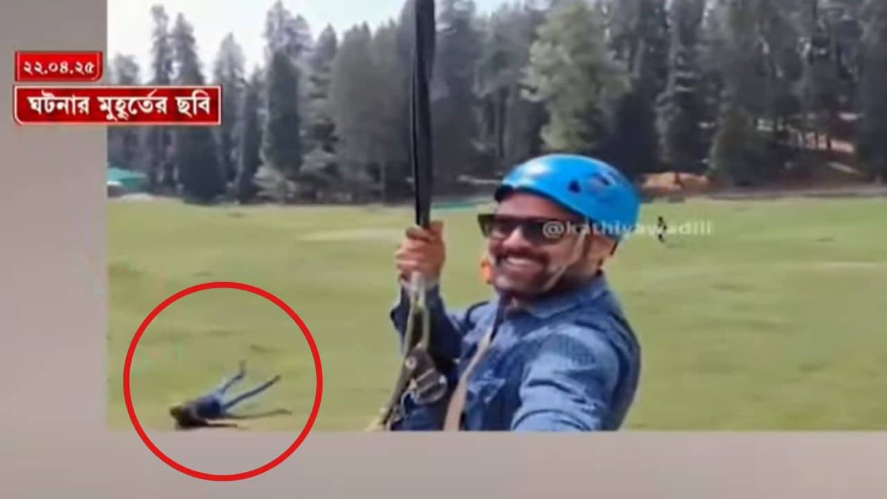 ঋষি ভাট নামে ওই পর্যটক তাঁর স্ত্রী-সন্তানকে নিয়ে। ভিডিয়োতে দেখা যাচ্ছে জিপ লাইন অপারেটর যুবক তাঁর জিপলাইন শুরু হওয়ার আগে আচমকা বলে উঠছেন ‘আল্লাহু আকবর’। একবার নয়, তিনবার এ কথা বলছেন তিনি। আর তারপরই শোনা গেল গুলির শব্দ। তারপরও ওই পর্যটককে থামাননি অপারেটর। দড়িতে তুলে দেন তিনি। পর্যটক শব্দ শুনলেও, বিষয়টা বুঝতে পারেননি।