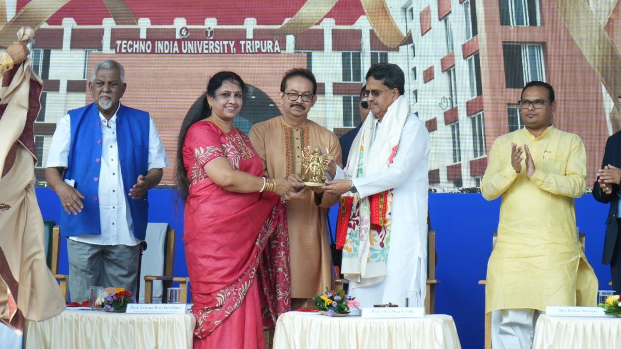 আগরতলা: ত্রিপুরায় উচ্চশিক্ষার ক্ষেত্রে বড় পদক্ষেপ টেকনো ইন্ডিয়া গ্রুপের। উত্তর-পূর্ব ভারতের এই রাজ্যে খুলে গেল টেকনো ইন্ডিয়া বিশ্ববিদ্যালয় (TIUT)। শুক্রবার ত্রিপুরার মুখ্যমন্ত্রী মানিক সাহা আগরতলায় টেকনো ইন্ডিয়া নলেজ ক্যাম্পাসে TIUT-র নবনির্মিত পরিকাঠামোর উদ্বোধন করেন। এই বিশ্ববিদ্যালয়ের সূচনাকে ত্রিপুরায় উচ্চশিক্ষার ক্ষেত্রে গুরুত্বপূর্ণ অগ্রগতি বলে উল্লেখ করেন মুখ্যমন্ত্রী মানিক সাহা। স্মৃতির সরণি বেয়ে ত্রিপুরায় টেকনো ইন্ডিয়া গ্রুপের পথচলার কথা তুলে ধরলেন টেকনো ইন্ডিয়া গ্রুপের প্রতিষ্ঠাতা ও এমডি সত্যম রায়চৌধুরী। বিশ্ববিদ্যালয়ের উদ্বোধনের পর উপহার হিসেবে ত্রিপুরার মুখ্যমন্ত্রীর হাতে দুর্গা প্রতিমা তুলে দেন টেকনো ইন্ডিয়া গ্রুপের কো-চেয়ারম্যান মানসী রায়চৌধুরী এবং টেকনো ইন্ডিয়া গ্রুপের প্রতিষ্ঠাতা ও এমডি।