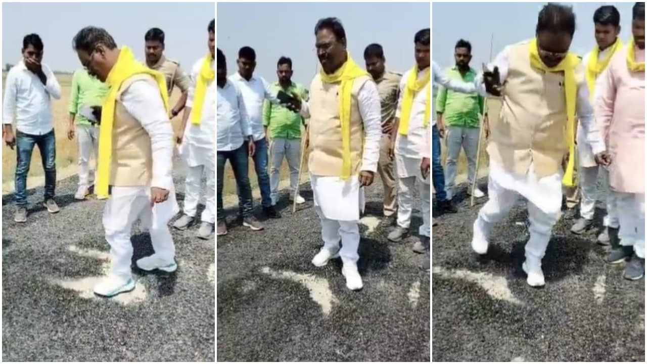 Man in Lucknow rips up poor-quality road, built for Rs 40 crore, with bare hands to expose corruption.