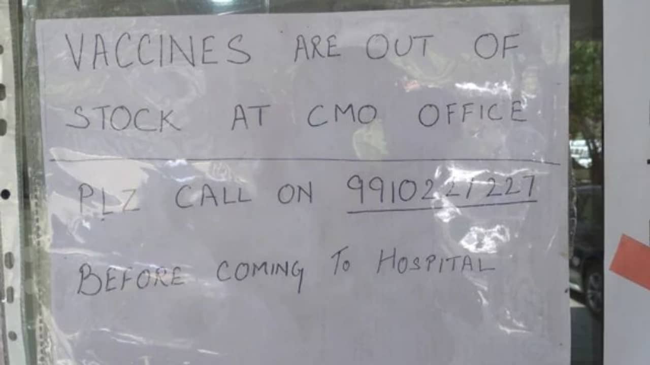 নয়া দিল্লি: কেন্দ্র বারবার বলছে টিকার (COVID Vaccine) কোনও ঘাটতি নেই। কিন্তু একাধিক রাজ্যের পরিস্থিতি একেবারে অন্য। আগেই মহারাষ্ট্র (Maharashtra) জানিয়েছে রাজ্যে করোনা টিকা শেষের পথে। পাল্টা স্বাস্থ্যমন্ত্রক জানিয়েছে, মহারাষ্ট্র নিজের গাফিলতি ঢাকতেই এই সব বলছে। কিন্তু একাধিক রাজ্যে যে করোনা টিকার অভাব রয়েছে তার প্রমাণ মিলছে উত্তর প্রদেশ ও মহারাষ্ট্রের একাধিক সেশন সেন্টারেই। গাজ়িয়াবাদের বিভিন্ন সেশন সেন্টারে পোস্টার পড়েছে ‘ভ্যাকসিন আউট অব স্টক।’ সেখানে পোস্টারে বড় বড় করে লেখা হয়েছে, “ভ্যাকসিনের পর্যাপ্ত জোগান নেই সিএমও অফিসে। তাই হাসপাতালে আসার আগে ফোন করে আসুন।”