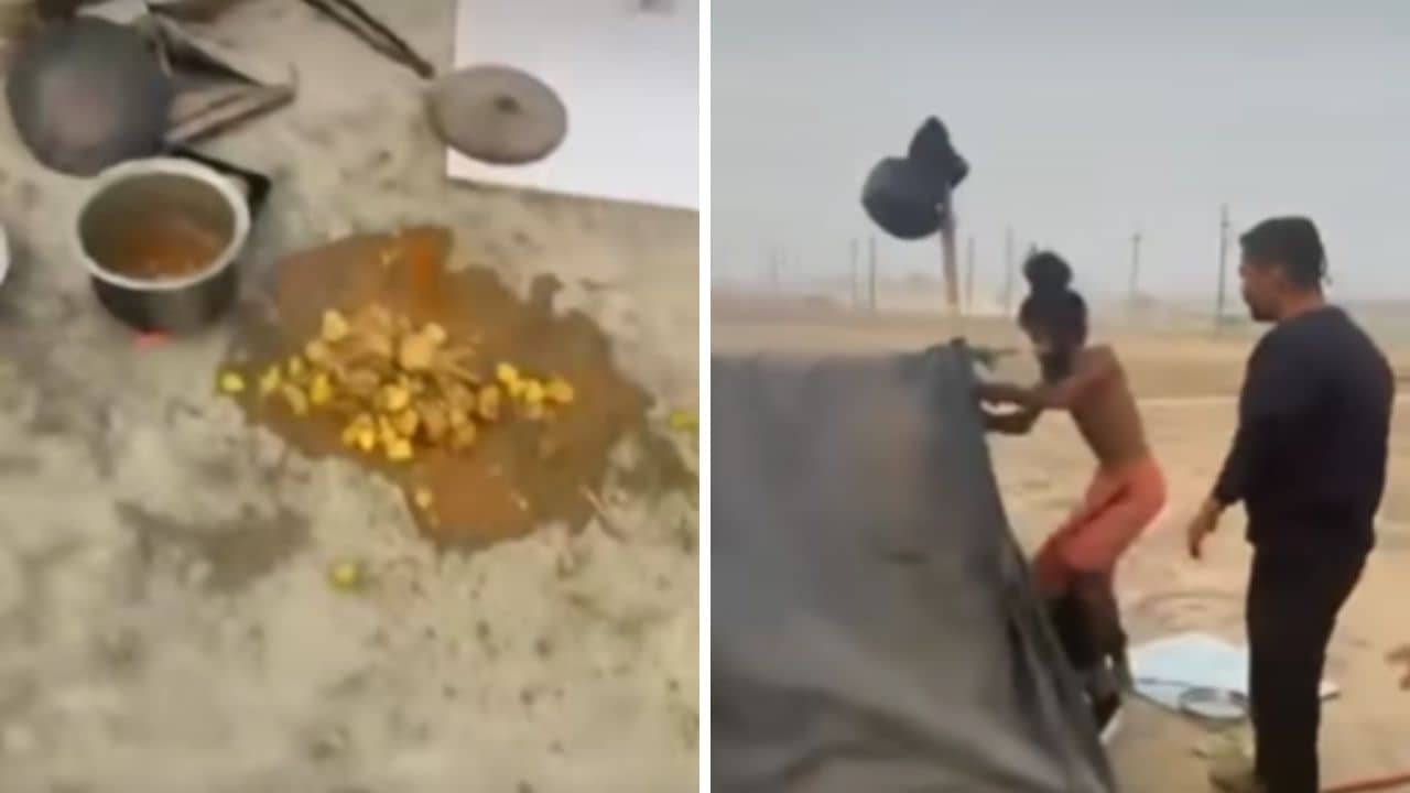 ভিডিয়োতে দেখা যাচ্ছে, এক সাধু, পরনে গেরুয়া গামছা, মাথায় জটা, হতে কুড়ুল নিয়ে এগিয়ে যাচ্ছে একটি কালো তাবুর দিকে। তাবুর বাইরে বসানো ছিল রান্না। সেই রান্না ঢাকা সরাতেই রেগে আগুন হয়ে যান সাধু। তাঁরই সঙ্গে ছিলেন আরও বেশ কয়েকজন ব্যাক্তি। কুম্ভ মেলায় মাংস রান্না করছিলেন এক দম্পতি।