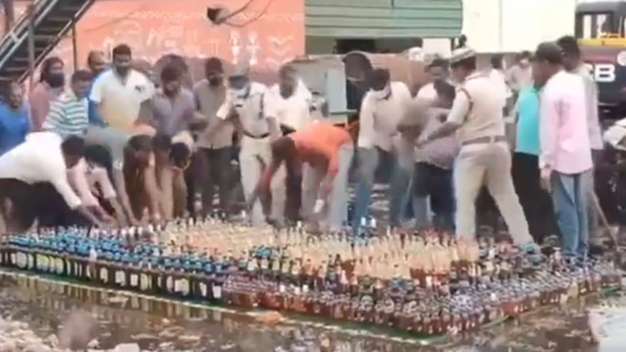অন্ধ্র প্রদেশের গুন্টুর জেলায় বাজেয়াপ্ত করা মদ নষ্ট করছিল পুলিশ। আনুমানিক ৫০ লক্ষ টাকার মদ রাখা ছিল। পুলিশের পরিকল্পনা ছিল, বুলডোজার দিয়ে সমস্ত মদের বোতল গুড়িয়ে দেওয়া হবে। যেই মুহূর্তে মদের বোতল একটি পাটাতনে রাখা হয়, ওমনি ভিড় জমায় স্থানীয় মানুষ। চারিদিক থেকে ঘিরে ধরে সকলে।