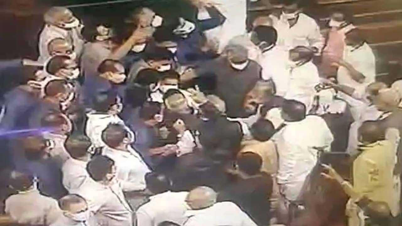 #WATCH CCTV visuals of Opposition MPs jostling with marshals in Parliament yesterday pic.twitter.com/yfJsbCzrhl