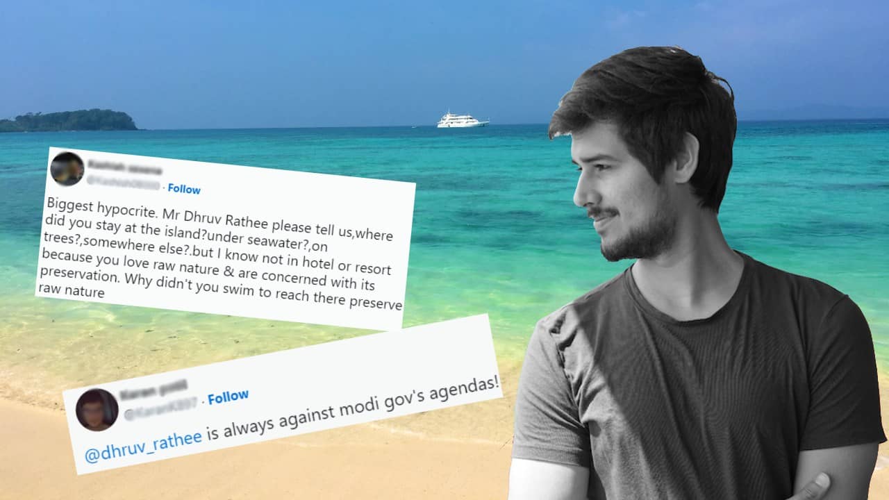 Biggest hypocrite. Mr Dhruv Rathee please tell us,where did you stay at the island?under seawater?,on trees?,somewhere else?.but I know not in hotel or resort because you love raw nature & are concerned with its preservation. Why didn’t you swim to reach there preserve raw nature