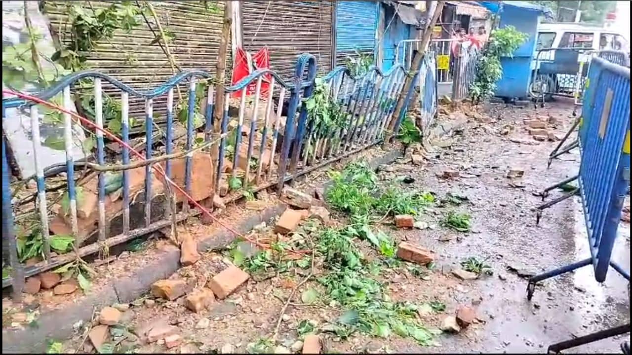 কলকাতা: রাত থেকেই বৃষ্টি চলছে। আজ সকালেও কয়েক পশলা বৃষ্টি হয়েছে শহর কলকাতায়। আর এই বৃষ্টির মধ্যেই কলকাতায় ভেঙে পড়ল তিনতলা এক বাড়ির কার্নিশ। শনিবার সকালে ঘটনাটি ঘটেছে কলকাতার চারু মার্কেট থানা এলাকায়। টালিগঞ্জের দেশপ্রাণ শাসমল রোডের পাশে তিনতলা একটি বাড়ির কার্নিশের একাংশ ভেঙে পড়ে। চাঙড় ভেঙে মাথায় পড়ে রাস্তার ধার দিয়ে যাওয়া এক পথচারীর। গুরুতর জখম অবস্থায় তাঁকে হাসপাতালে নিয়ে যাওয়া হয়েছে। আহত ওই ব্যক্তির নাম চন্দন বর্মণ। বাড়ি মেদিনীপুরে। বছর ৩৬-এর ওই ব্যক্তির মাথায় ৩০টি সেলাই পড়েছে বলে হাসপাতাল সূত্রে জানা যাচ্ছে।