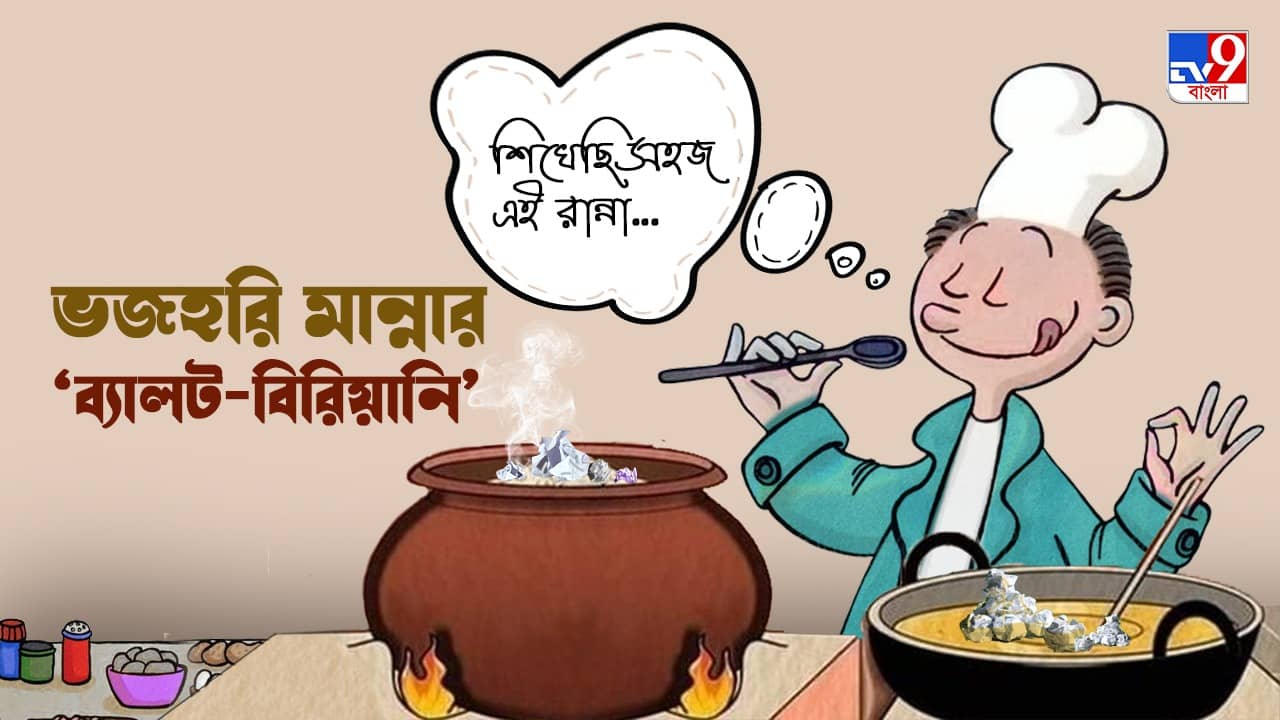 কলকাতা: রোববারের বাজার। সকাল থেকে টানা বৃষ্টি। এমন ওয়েদারে খিচুরি আর ডিমভাজা হলে কেমন হয়! গিন্নিকে প্রস্তাব দিলেন ভট্টদা। আর সেই প্রস্তাব পত্রপাট খারিজ করে দেন গিন্নি। তিনি বলেন, আজ স্পেশাল মেনু হবে। লোলুপ দৃষ্টিতে ভট্টদার জিজ্ঞাসা, কী মেনু! গিন্নি বলেন, খিচুড়ি আর ব্যালট ভাজা। তা শুনে অজ্ঞান হওয়ার উপক্রম ভট্টদার। এমন দৃশ্য আপনার রান্নাঘরে হবে কি না হলফ করে না বলতে পারলেও, নেটিজেনদের ঘরে কিন্তু ব্যালট দিয়ে নানা রেসিপির রান্না চলছে জোরকদমে। আর সেই রান্না পোস্টও করছেন তাঁরা। ব্যালট ভাজা, ব্যালট চচ্চরি এমনকী ব্যালট বিরিয়ানিও। আকাশছোঁয়া বাজার দরে হঠাৎ ব্যালট নিয়ে পড়লেন কেন নেটিজেনরা? সৌজন্যে এবারের পঞ্চায়েত নির্বাচনে হাবড়ার ‘বিনা প্রতিদ্বন্দ্বিতায় জয়ী’ প্রার্থী মহাদেব মাটি। তিনি ব্যালট খেয়ে প্রমাণ করেছেন বাঙালির রসনায় এই বস্তুটির গুরুত্ব অপরিসীম। যদিও ব্যালট খাওয়ার বিষয়টি বিরোধীদের অভিযোগ।