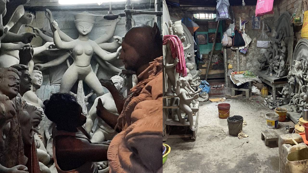 কলকাতা: আর মাত্র ৩৩ দিন পর দুর্গাপুজো। সেই দুর্গাপুজো ঘিরে মহানগরী থেকে জেলার বিভিন্ন প্রান্তে প্রস্তুতি ইতিমধ্যেই শুরু হয়ে গিয়েছে। প্রতিমাশিল্পীরা এখন দিনরাত এক করে প্রতিমা গড়ার কাজ শুরু করে দিয়েছেন। কুমারটুলিতেও দেখা গেল সেই ব্যস্ততা। ইতিমধ্যেই কুমারটুলি থেকে বিশ্বকর্মা এবং গণেশ প্রতিমা পৌঁছে যাচ্ছে শহরের বিভিন্ন প্রান্তে। এইসব কাজের পাশাপাশি শিল্পীরা ব্যস্ত দুর্গাপ্রতিমা গড়তে।