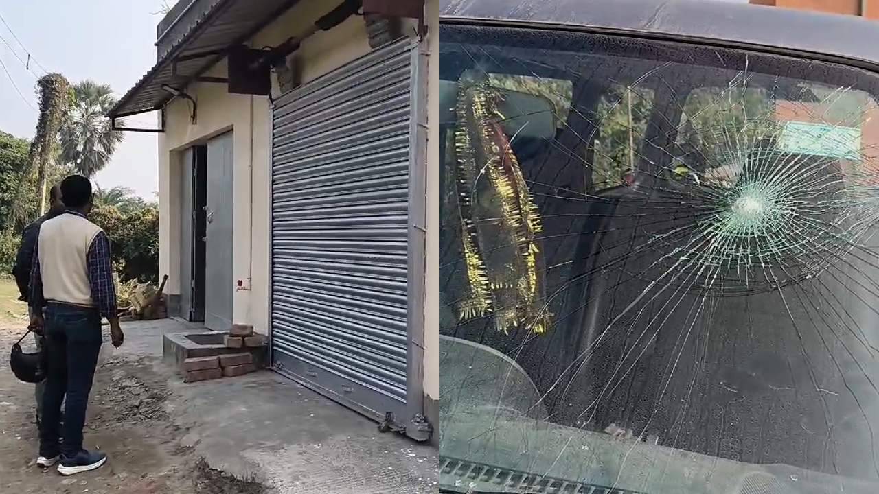 বামনঘাটা: রাতের অন্ধকারে দুষ্কৃতী হামলা। ভাঙচুর চলল গাড়িতে। বাইরে থেকে লাগিয়ে দেওয়া হল তালা। চাঞ্চল্যকর ঘটনা কলকাতার লেদার কমপ্লেক্স থানার নিউ বামনঘাটা এলাকায়। পুলিশ ও স্থানীয় সূত্রে খবর, বৃহস্পতিবার রাতে নিউ বামনঘাটা এলাকায় বিদ্যুৎ বিশ্বাসের বাড়িতে হামলা চালায় বেশ কিছু দুষ্কৃতী। বাড়ির বাইরে রাখা গাড়ি ভাঙচুর করা হয়।