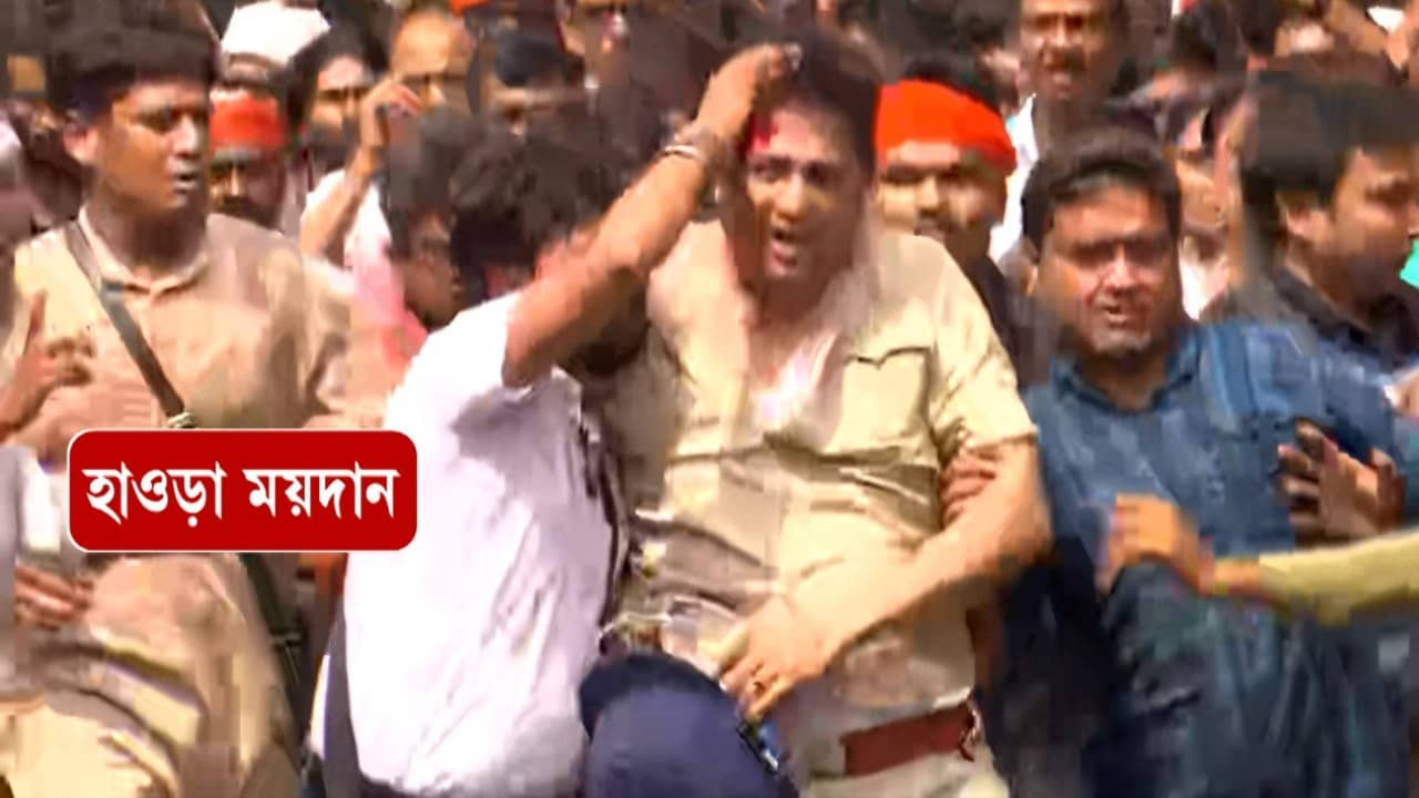 শুধু হাওড়া ময়দান নয়, হাওড়া ব্রিজেও সকাল থেকে ব্যাপক উত্তেজনার ছবি দেখা যায়। ব্রিজে থেকে নামার মুখে এমজি রোডেও দফায় দফায় কাঁদানে গ্যাসের সেল ফাটাতে দেখা যায় পুলিশ। পাল্টা ইট বৃষ্টি হয় পুলিশকে লক্ষ্য করে। একাধিক জায়গায় আবার ত্রিস্তরীয় ব্যারিকেড গড়ে তুলেছিল পুলিশ। কিন্তু, উন্মত্ত জনতার ঢেউয়ে বহু জায়গাতেই খড়কুটোর মতো উড়ে যায় সেই সব ব্যারিকেড। আর ঠিক তখনই ফের জল কমান নিয়ে তেড়ে আসে পুলিশ। ছত্রভঙ্গ করতে শুরু হয়ে যায় লাঠিচার্জ। পাল্টা জাতীয় পতাকা হাতে নিয়ে ‘বুক পেতেছি গুলি কর, জাস্টির ফর আরজি কর’, ‘উই ওয়ান্ট জাস্টিসের’ মতো স্লোগান তুলে ধেয়ে যায় আন্দোলনকারীরা। পরিস্থিতি এমন দাঁড়ায় যে কখনও আন্দোলনকারীদের চাপে, পাথর বৃষ্টির মুখে পিছু হটতে বাধ্য হয় পুলিশ। যদিও পর মুহূর্তেই আবার নতুন রণসজ্জায় এগিয়ে আসে উর্দিধারীরা।