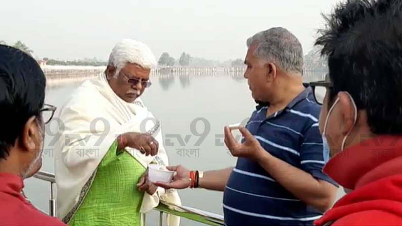 প্রত্যেকদিনই ইকো পার্কে প্রাতঃভ্রমণ সারেন বিজেপির রাজ্য সভাপতি দিলীপ ঘোষ। রবিবারও গিয়েছিলেন তিনি। অন্যদিকে সেখানেই মর্নিং ওয়াক করছিলেন বিধাননগরের ৩৪ নম্বর ওয়ার্ডের বিদায়ী কাউন্সিলর দেবাশিস জানা। মুখোমুখি হন তাঁরা। ঝিলের ধারে দাঁড়িয়ে কিছুক্ষণ কথাও বলেন। দিলীপ ঘোষ দেবাশিস জানার দিকে বাড়িয়ে দেন মিষ্টি ভর্তি সাদা কৌটো।