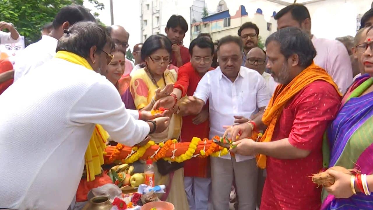 খুঁটিপুজোয় ছিলেন রাজ্য সভাপতি শমীক ভট্টাচার্য, কালচারাল সেলের প্রধান রুদ্রনীল ঘোষ, প্রাক্তন সাংসদ রূপা গাঙ্গুলি-সহ একাধিক নেতৃত্ব। যদিও আয়োজক হিসাবে লেখা হয়েছে পশ্চিমবঙ্গ সাংস্কৃতিক মঞ্চ। সেখানে সকলেই সরাসরি বিজেপির সঙ্গে যুক্ত। রবিবারের খুঁটি পুজো বিজেপি নেতা পদাধিকারী কর্মীদের দেখা গিয়েছে।