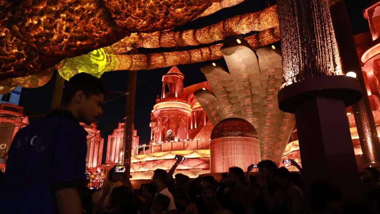 কলকাতা: টালা প্রত্যয় থেকে সুরুচি সংঘ, উপচে পড়ছে ভিড়। পঞ্চমীর পর ষষ্ঠীতেও সর্বত্রই নেমেছে দর্শনার্থীদের ঢল। ভিড় সামাল দিতে হিমশিম খাচ্ছে পুলিশ। কিন্তু, ভিড়ে নিরিখে জোর টক্কর দিচ্ছে চেতলা অগ্রণীও। এবার তাদের পুজো পা দিয়েছে ৩৩তম বর্ষে। এবারের থিম অমৃতকুম্ভের সন্ধানে। এক কোটি রুদ্রাক্ষ ব্যবহার হয়েছে গোটা মণ্ডপ তৈরিতে। যা দেখতেই ঢল নামছে মানুষের। মণ্ডপ পা রাখতেই হারিয়ে যাবেন কোনও এক পাহাড়ের কোলে। সর্বত্রই জ্যোর্তিময় দেবাদিদেব মহাদেব! বাজছে শাঁখ, বাজছে কাঁসর।
