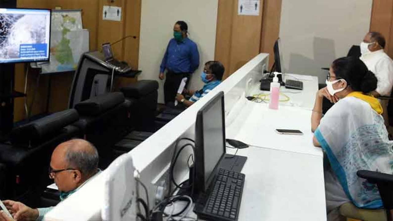 মঙ্গলবার সকালে প্রথমে নবান্নে যান মমতা বন্দ্যোপাধ্যায়। এরপর সেখান থেকে পৌঁছন উপান্নে। নবান্ন-উপান্ন একেবারে পাশাপাশি দু’টি ভবন। নবান্ন ১৪ তলা, উপান্ন ৪ তলা। এই উপান্নে ২৪ ঘণ্টার জন্য কনট্রোল রুম খোলা হয়েছে। দেওয়া হয়েছে হেল্পলাইন নম্বর ১০৭০। দু’দিন এখান থেকেই যাবতীয় ব্যবস্থাপনার নজরদারি করবেন মমতা বন্দ্যোপাধ্যায়। রাত জেগে পরিস্থিতি নজরে রাখবেন তিনি।