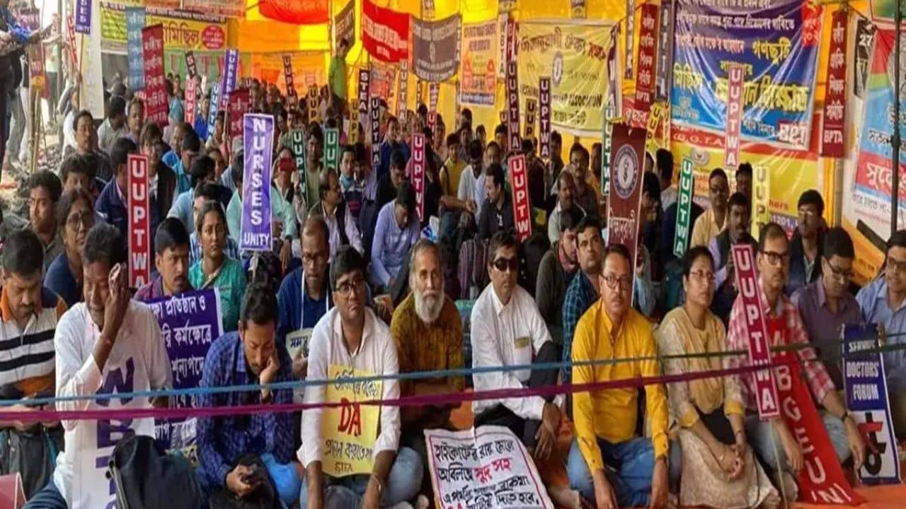 রাজ্য সরকারি কর্মীদের মূলত দুটি দাবি। এক, কেন্দ্রের হারে ডিএ বাড়াতে হবে। যা নিয়ে বর্তমানে এই উদ্ভুত পরিস্থিতি। আর দুই, শীঘ্রই রাজ্য সরকারে সব শূন্য পদে নিয়োগ করতে হবে। তা না হলে তাঁরা ভোটের ডিউটিতে যাবেন না। রবিবারই রাজভবনে গিয়ে রাজ্যপালের সঙ্গে দেখা করেন ডিএ আন্দোলনকারীদের প্রতিনিধিরা। রাজভবনের বৈঠকের পর আন্দোলনরত সরকারি কর্মচারীরা বলেন, ‘রাজ্যপাল নিজে প্রাক্তন সরকারি কর্মচারী। তিনি আমাদের পাশে থাকার বার্তা দিয়েছেন।’সরকারি কর্মীদের অনশন তোলার জন্যও অনুরোধ করেন রাজ্যপাল।