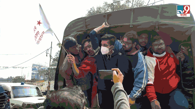 পুলিশ গোটা এলাকা ঘিরে রেখেছে। এদিকে এসএফআই-এর একাধিক বিক্ষোভকারীকে জোর করে চ্যাঙদোলা করে এলাকা থেকে সরাতে দেখা যায় পুলিশকে।