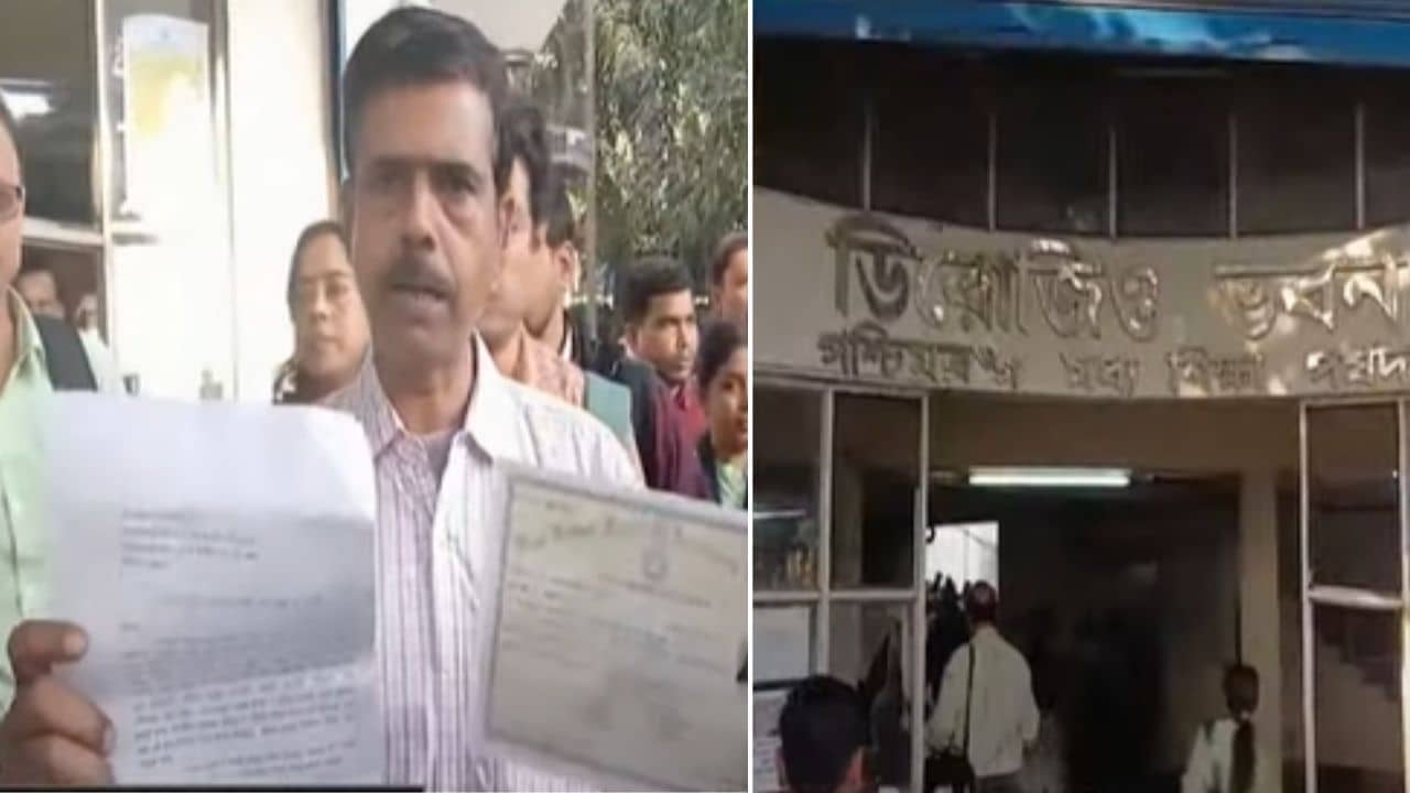 সল্টলেকের ডিরোজিও ভবনের সামনে বিভিন্ন জেলা থেকে আসা স্কুল শিক্ষক শিক্ষিকাদের জমায়েত। মূলত একই নাম হওয়ার কারণে বা পাশে বাবার নাম না থাকার কারণে অ্যাডমিট কার্ডের মধ্যে ভুল আছে। তাছাড়া যেহেতু এবছর প্রথমবার অনলাইন এনরোলমেন্ট হয়েছে সে ক্ষেত্রে তো অনেক ছাত্রছাত্রী অ্যাডমিট কার্ডে নানারকম ভুল রয়েছে।