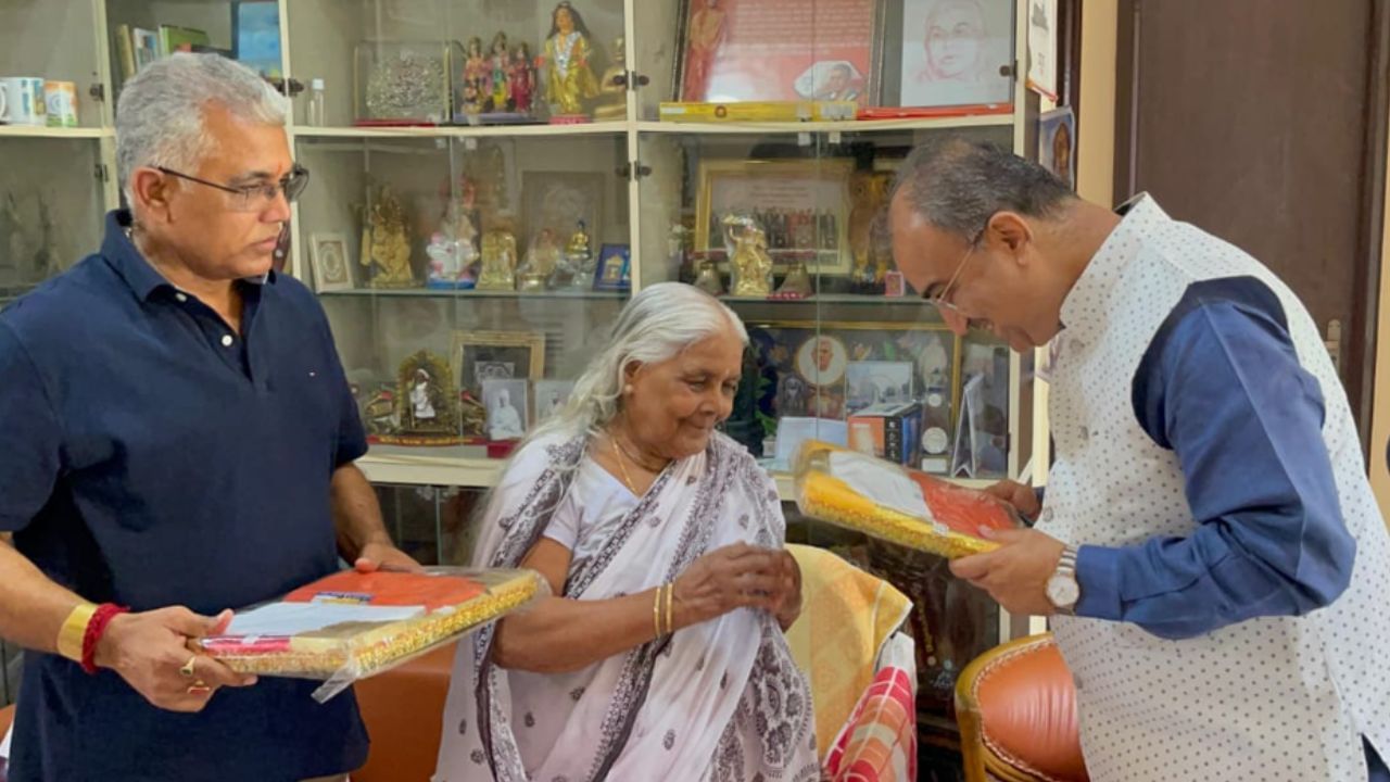 অন্দরমহলের যে ছবি সামনে এসেছে, তাতে দেখা যাচ্ছে অতিথিদের সঙ্গে কথা বলছেন দিলীপের মা পুষ্পলতা ঘোষ। শুভেচ্ছা জানাতে গিয়েছিলেন বিজেপির রাজ্য সভাপতি সুকান্ত মজুমদার, সুনীল বনশল, মঙ্গল পাণ্ডে, লকেট চট্টোপাধ্যায়, শমিক ভট্টাচার্য প্রমুখ।