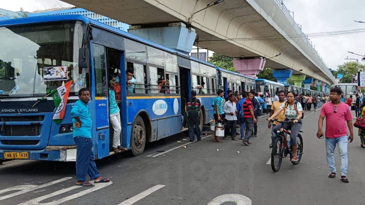 কলকাতা: রাস্তার ধারে পরপর দাঁড়িয়ে আছে নীলরঙের সরকারি বাস। শুক্রবার সকাল থেকে এই ছবি চোখে পড়ছে কলকাতার একাধিক জায়গায়। তবে বাসগুলি সাধারণ যাত্রীদের জন্য দাঁড়িয়ে নেই। সেগুলিতে ধর্মতলায় নিয়ে যাওয়া হবে তৃণমূল কর্মীদের। স্বাভাবিকভাবেই রাস্তায় বাসের অভাব বেশ বুঝতে পারছেন নিত্যযাত্রীরা। কর্মস্থলে পৌঁছতে বেগ পেতে হচ্ছে তাঁদের।