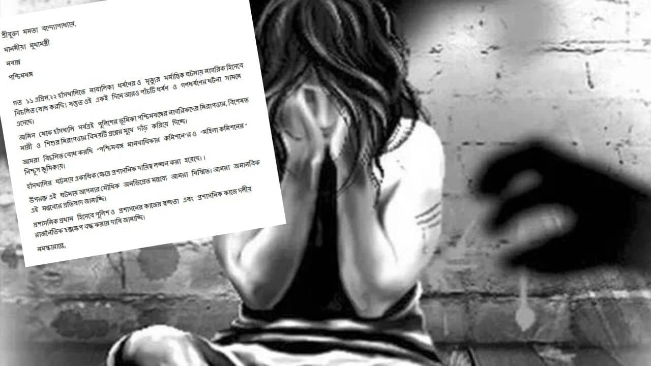 এর পাশাপাশি সম্প্রতি মুখ্যমন্ত্রী মমতা বন্দ্যোপাধ্যায় এক সরকারি মঞ্চ থেকে হাঁসখালির ঘটনা প্রসঙ্গে যে মন্তব্য করেছিলেন, সেই প্রসঙ্গও উঠে এসেছে বিশিষ্টজনদের লেখা খোলা চিঠিতে। সেখানে তাঁরা লিখেছেন, মুখ্যমন্ত্রীর মৌখিক অনভিপ্রেত মন্তব্যে আমরা বিস্মিত। মুখ্যমন্ত্রীরর এই মন্তব্যের তীব্র প্রতিবাদ জানিয়েছেন তাঁরা। উল্লেখ্য, সম্প্রতি মুখ্যমন্ত্রী মমতা বন্দ্যোপাধ্যায় হাঁসখালি নিয়ে যে মন্তব্য করেছিলেন, তা কার্যত শোরগোল ফেলে দিয়েছিল গোটা রাজ্যে। হাঁসখালির নির্যাতিতার সঙ্গে অভিযুক্তের প্রেমের সম্পর্ক ছিল বলে মন্তব্য করেছিলেন মুখ্যমন্ত্রী। সরাসরি কেউ কিছু না বললেও মুখ্যমন্ত্রীর মন্তব্যে অনেক তৃণমূল নেতাই অস্বস্তিতে পড়েছিলেন। তাই ড্যামেজ কন্ট্রোলে নামতে হয় তৃণমূল শিবিরকে।