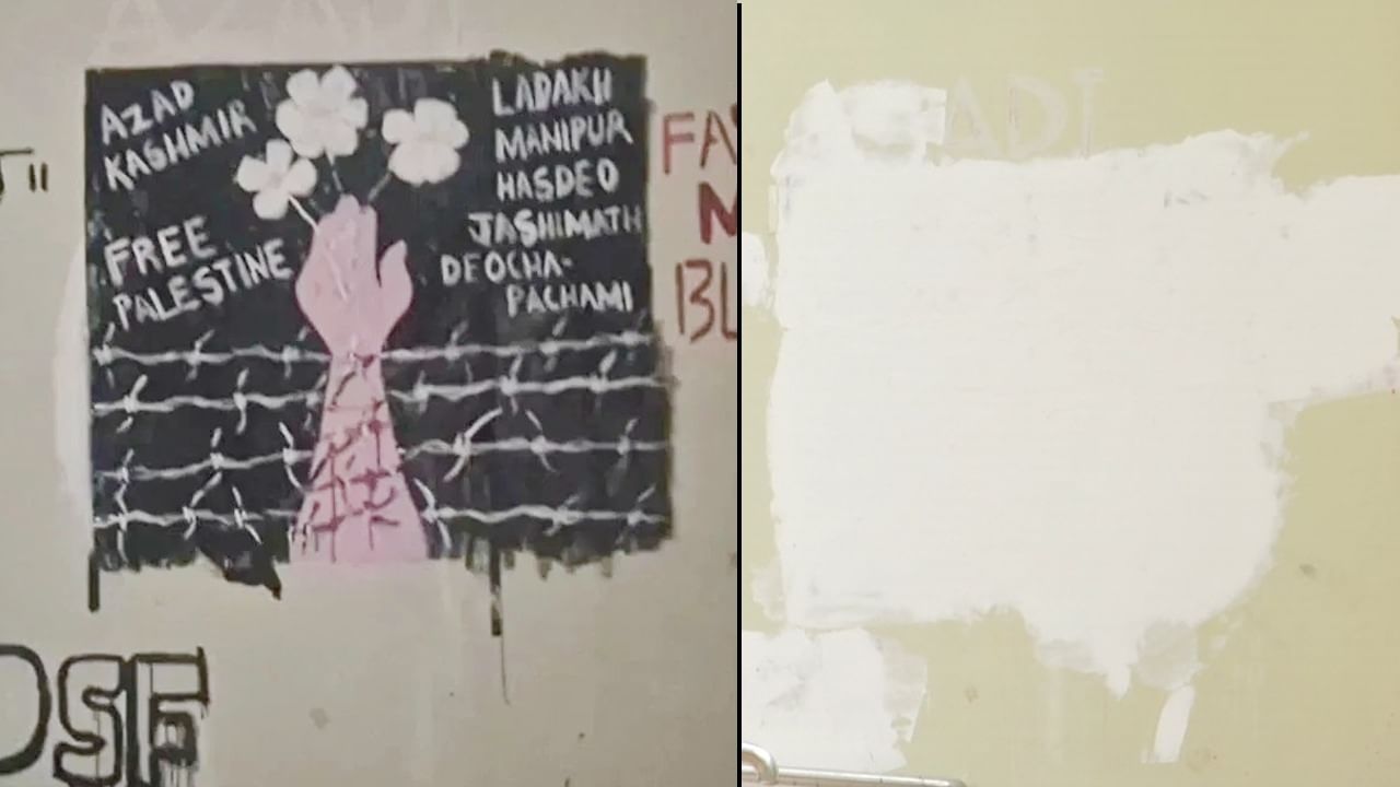 Jadavpur University: যাদবপুর বিশ্ববিদ্যালয়ের ৩ নম্বর গেটের কাছে টেকনোলজি ভবনে লেখা হয় আজাদ কাশ্মীরের স্লোগান। মুক্ত প্যালেস্তাইনেরও দাবি জানানো হয়। সেই দেওয়াল লিখনের নিচে লেখা অতি বাম ছাত্র সংগঠন পিডিএসএফ-র নাম লেখা ছিল। তা নিয়ে বিতর্ক বাধে।