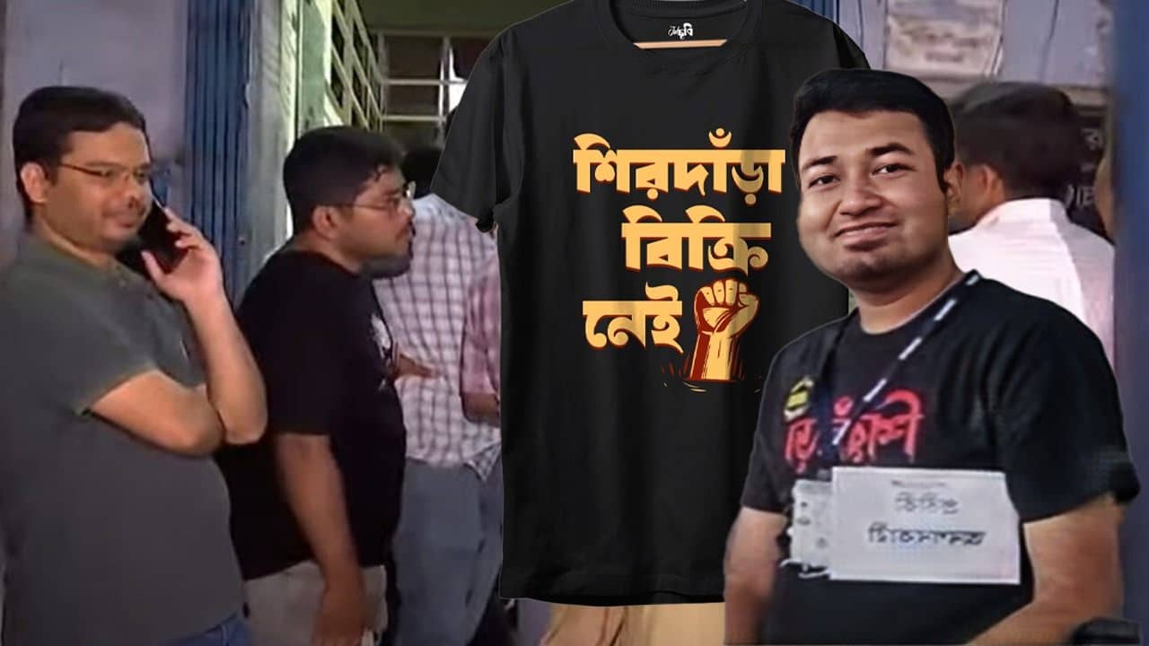 এদিকে তপোব্রতকে আটকের খবর চাউর হতেই ময়দান থানার সামনে জমতে থাকে ভিড়। চিকিৎসকদের বিভিন্ন সংগঠনের সদস্যরা ছুটে আসেন। তাঁদের সাফ দাবি, পুলিশ যতক্ষণ না তপোব্রতকে ছাড়ছে ততক্ষণ তাঁরা ওখানে থাকছেন। কলকাতা পুরসভার এক চিকিৎসক বলছেন, “রেড রোডের কার্নিভালে কেএমসি-র অফিসিয়াল মেডিকেল টিমের তরফে তিনি ডিউটিতে ছিলেন। আড়াইটের সময় পুলিশ তাঁকে ডাকে। এদিকে তাঁর টি-শার্টে শুধু লেখা ছিল শিরদাঁড়া বিক্রি নেই। এটা তো পুরনো স্লোগান। তবে তাঁর জামাতে জাস্টিস পর আরজি কর ব্যাজ লাগানো ছিল। পেপার ট্য়াগে ছিল প্রতীকী অনশনকারী। পুলিশ তাঁকে জিজ্ঞাসাবাদ শুরু করতেই আমরা জানতে পারি। ইতিমধ্যেই তাঁকে ময়দান থানায় নিয়ে চলে আসা হয়।”