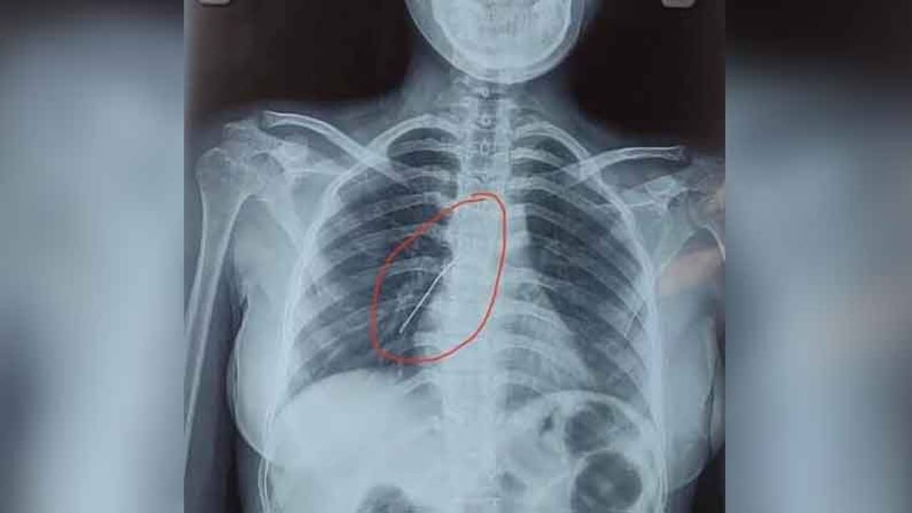 মঙ্গলবার এসএসকেএমের ইএনটি বিভাগে ভর্তি হন ওই কিশোরী। চিকিৎসকরা সঙ্গে সঙ্গেই তাঁর এক্স-রে করান। দেখা যায় সূচটি বিপজ্জনকভাবে ফুসফুসের লোয়ার লোবে আটকে রয়েছে। তৎক্ষণাৎ তাঁর অস্ত্রোপচারের সিদ্ধান্ত নেওয়া হয়। ব্রঙ্কোস্কোপি করে কিশোরীর দেহ থেকে সূচটি বার করা হয়। তিনি আপাতত স্থিতিশীল।
