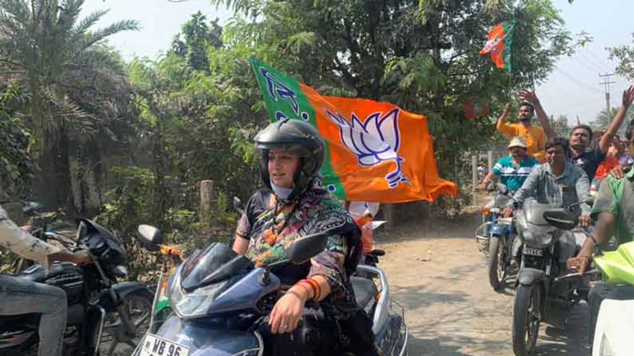 কলকাতা: বৃহস্পতিবারের চিত্রটা ছিল আলাদা। সাদা শাড়ি, হাওয়াই চটি পায়ে, হেলমেট মাথায় স্কুটি চালিয়েছেন বাংলার মুখ্যমন্ত্রী (CM Mamata Banerjee)। হাত কেঁপেছে, বাঁ দিকে হেলেছে যান, সামলে নিয়েছেন পাশে থাকা নিরাপত্তারক্ষীরা। নেট দুনিয়ায় উল্কা গতিতে ভাইরাল হয়েছে দ্বিতীয় হুগলি সেতুর সেই ছবি। ঠিক ২৪ ঘণ্টার ব্যবধান। বাংলার বুকে বেশ ‘দক্ষ হাতেই’ স্কুটি চালাতে দেখা গেল কেন্দ্রীয় মন্ত্রী স্মৃতি ইরানিকে (Smriti Irani)। তাঁর পিছনে এল আরও ৫০-৬০টি বাইক। উঠল ‘জয় শ্রী রাম’ স্লোগান। তারওপরে অনেকটা পিছনে শম্বুক গতিতে বিজেপির ‘রথ’ নিয়ে এলেন নেত্রী রূপা গঙ্গোপাধ্যায়। গড়িয়াতে পরিবর্তন যাত্রার সূচনা করতে এসে অভিনবত্বের ছাপ রেখে গেলেন স্মৃতি ইরানি।