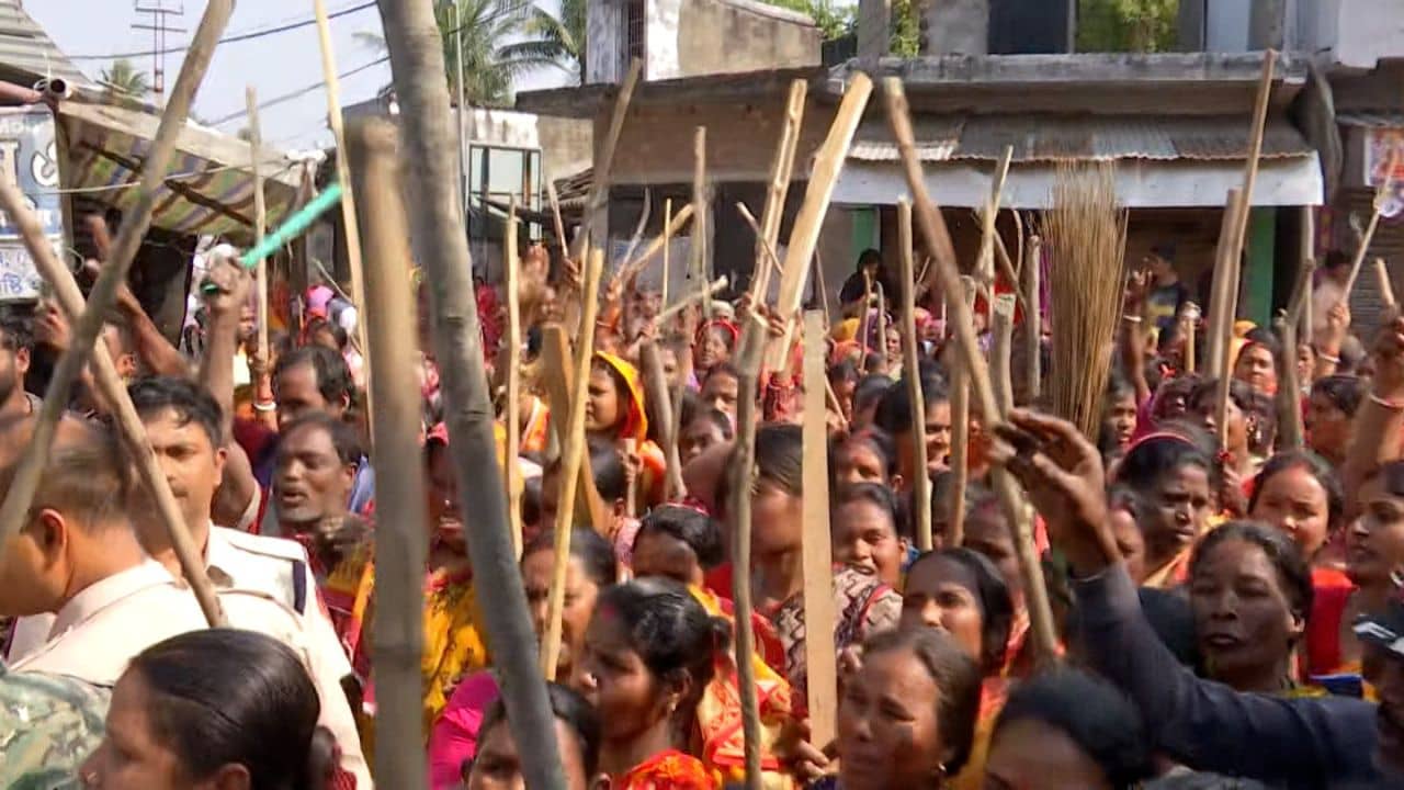 বুধবার থেকেই তেঁতে ছিল সন্দেশখালির পরিস্থিতি। বৃহস্পতিবার সকাল থেকে রীতিমতো গর্জে ওঠে সন্দেশখালি। ঝাঁটা, লাঠি, বাঁশ -যে যেরকম পেয়েছেন, তা হাতে নিয়ে রাস্তায় নেমে পড়েছেন গ্রামের হাজার হাজার মহিলা। পুলিশ প্রশাসনের বিরুদ্ধে বিস্তর ক্ষোভ উগরে দিয়েছেন তাঁরা।