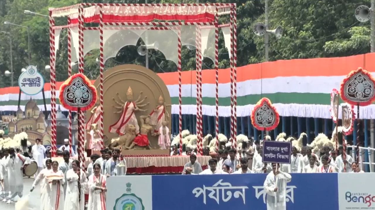উল্লেখ্য, পুলিশি কুচকাওয়াজ শেষে রেড রোডে নামে রাজ্য সরকারের বিভিন্ন দফতরের ট্যাবলো। যার একদম প্রথমেই ছিল পর্যটন দফতরের করা দুর্গা থিমের ট্যাবলোটি। তারপর আসে তথ্য ও সম্প্রচার দফতর ‘একতাই সম্প্রীতি’ ট্যাবলো। যেখানে হাতে হাত রেখে হাঁটতে দেখা যায় বিভিন্ন ধর্মাবলম্বী মানুষকে।