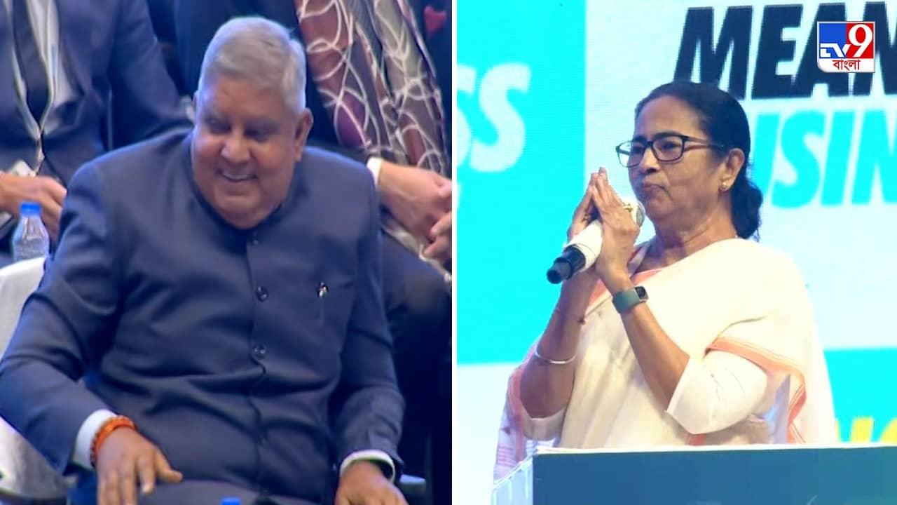 কলকাতা : শুরু থেকে সবকিছু ঠিক চলছিল। ‘সংঘাত’ দূরে সরিয়ে রাজ্যপাল-মুখ্যমন্ত্রীকে পাশাপাশি বসে কথা বলতে দেখা গিয়েছে। তবে বিশ্ব বাংলা বাণিজ্য সম্মেলনে নিজের বক্তব্যের শেষে কেন্দ্রকে ‘খোঁচা’ দিলেন মুখ্যমন্ত্রী মমতা বন্দ্যোপাধ্যায় (Mamata Banerjee)। রাজ্যপালের উদ্দেশে বললেন, এজেন্সি দিয়ে শিল্পপতিদের বিরক্ত না করতে বলুন কেন্দ্রকে। যা শুনে সম্মেলনে সামনের সারিয়ে বসে থাকা রাজ্যপাল জগদীপ ধনখড় হেসে ফেললেন। মমতার এই ‘খোঁচা’-য় সম্মেলনের তাল কাটল কি না, সেই প্রশ্ন উঠেছে।