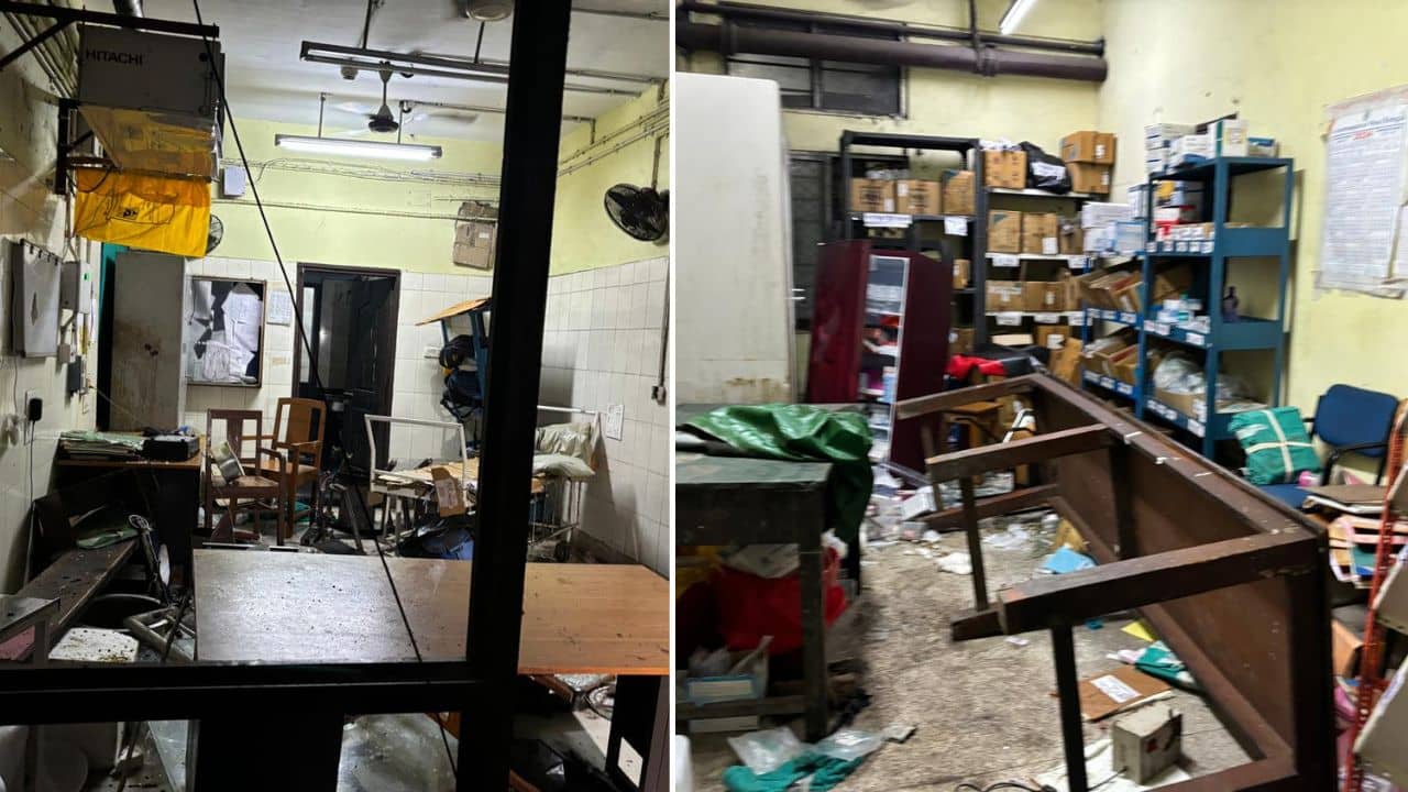 রাত সাড়ে ১২টা নাগাদ হঠাৎই আরজি কর হাসপাতালে পুলিশি ব্যারিকেড ভাঙে কয়েক হাজার দুষ্কৃতী। আন্দোলনকারীর বেশেই হাসপাতালের ভিতরে ঢুকে পড়ে দুষ্কৃতীরা। প্রথমেই নিশানা করা হয় এমার্জেন্সি বিল্ডিং। গ্রাউন্ড ফ্লোর থেকে শুরু করে দ্বিতীয় তল পর্যন্ত ভাঙচুর চালায় হামলাকারীরা। এমার্জেন্সি ওয়ার্ড, নার্সিং স্টেশন ভেঙে তছনছ করে দেওয়া হয়েছে। এমনকী, সেমিনার হল, যেখানে তিলোত্তমার উপরে নারকীয় অত্যাচার হয়েছিল, সেখানেও ভাঙচুর চালানোর চেষ্টা করে দুষ্কৃতীরা। তবে ওই জায়গায় পৌঁছতে পারেনি হামলাকারীরা।