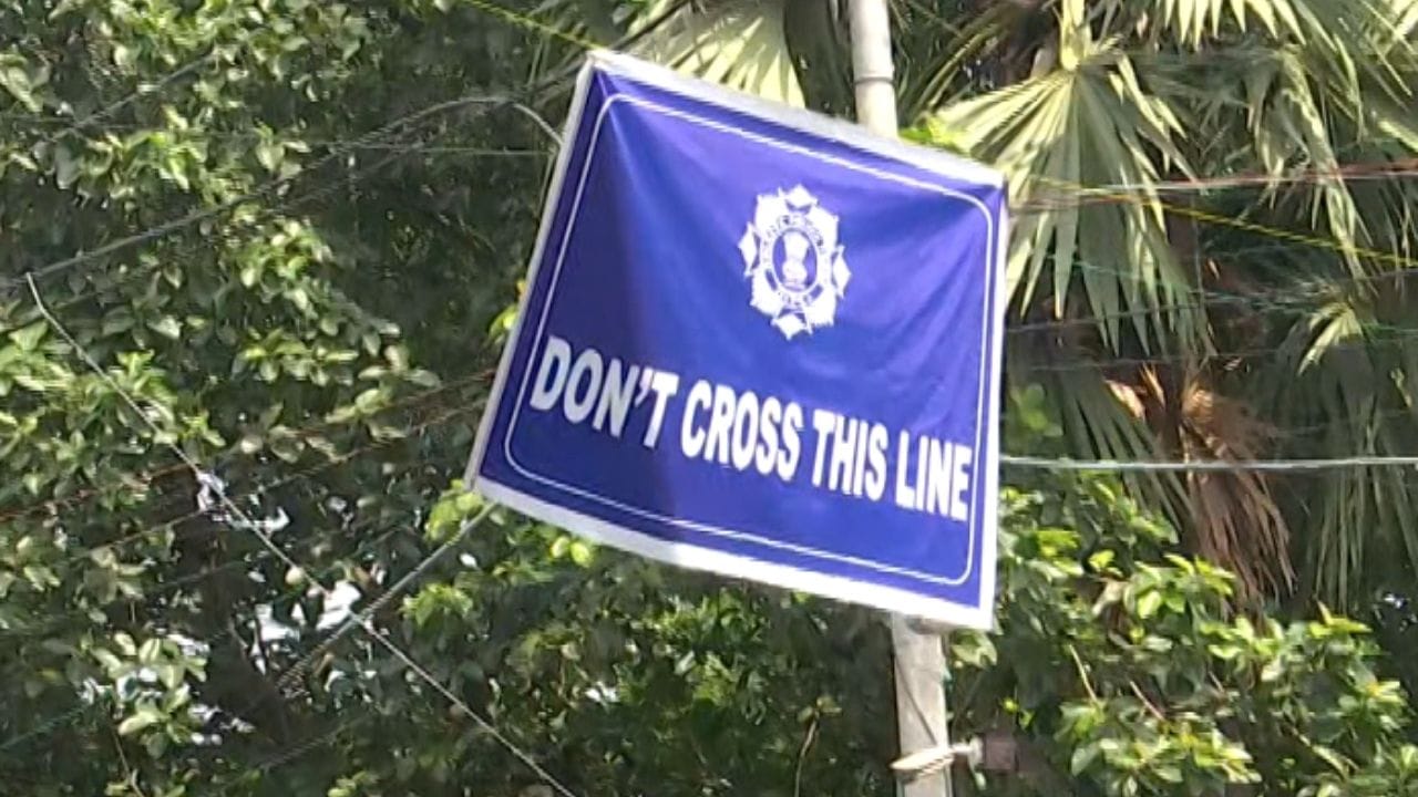 রাণী রাসমণী অ্যাভিনিউতে বিপুল পরিমাণ পুলিশ মোতায়েন করা হয়েছে। রয়েছে মহিলা পুলিশও। একটার পর একটা ব্যারিকেড বসানো হয়েছে রাস্তা জুড়ে, পুলিশি ভাষায় যাকে খাঁচা বলে। রাস্তার উপরে ব্যানার ঝোলানো হয়েছে ‘ডু নট ক্রস দিস লাইন’। এখান থেকে আর ওপারে যেতে দেওয়া হবে না। এখনও পর্যন্ত একটি রাস্তা সচল রয়েছে।