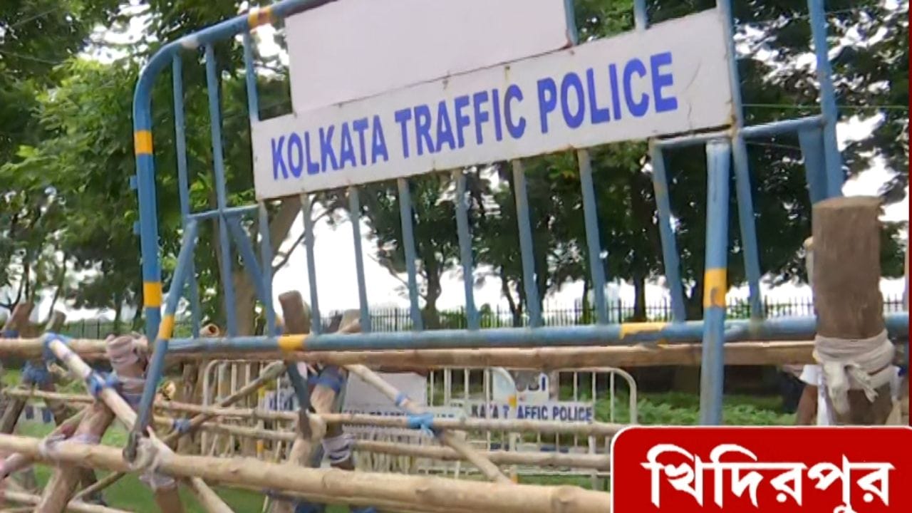খিদিরপুর মোড়ে একদিকে রেস কোর্স, অন্যদিকে ফোর্ট উইলিয়াম। বিদ্যাসাগর সেতুতে ওঠার আগেই বাঁশ দিয়ে ব্যারিকেড তৈরি করা হয়েছে। তার উপরে লোহার ব্যারিকেড বসানো রয়েছে। রাস্তা খুঁড়ে লোহার রড বসানো হয়েছে। বেলা বাড়তেই এই ব্যারিকেড রাস্তার মাঝখানে টেনে আনা হবে। দ্বিতীয় পর্যায়ে রাস্তায় পরপর ৫টা কন্টেনার বসানো হয়েছে। নবান্ন অভিযান শুরু হওয়ার আগেই খিদিরপুর রোড বন্ধ করে দেওয়া হবে। কন্টেনারগুলির মাঝে একটি বিশেষ নীল রঙের কন্টেনার রয়েছে, যা কলকাতা পুলিশ বিশেষভাবে এনেছে। অ্যাম্বুল্য়ান্স বা বিশেষ কোনও ইমার্জেন্সিতে এই কন্টেনারের দরজা খুলে দেওয়া হবে। ভিতরে কাঠের পাটাতন দিয়ে গাড়ি এপার থেকে ওপারে যেতে পারবে।
