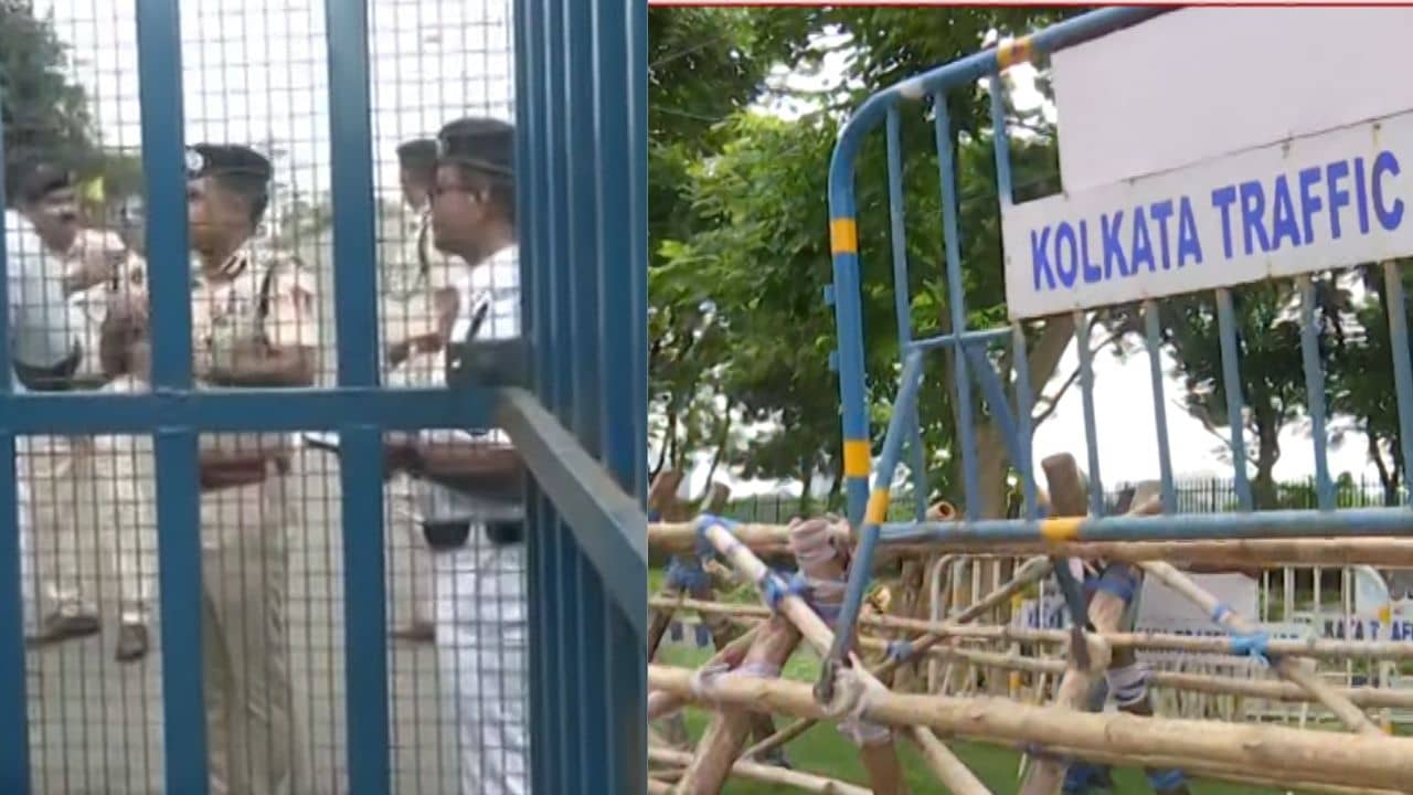 বিদ্যাসাগর সেতু, খিদিরপুর রোড, তারাতলা রোড, সার্কুলার গার্ডেনরিচ রোড, হাইড রোড, জওহরলাল নেহরু রোড, আরআর অ্যাভিনিউ, রেড রোড, ডাফরিন রোড, মেয়ো রোড, এজেসি বোস রোড, এসএন ব্যানার্জি রোড, এমজি রোড, ব্র্যাবোর্ন রোড এবং হাওড়া সেতু সহ একাধিক রাস্তায় যান চলাচল নিয়ন্ত্রণ করা হয়েছে। মিছিল আটকাতে রাস্তায় বসানো হয়েছে উচু উচু ব্যারিকেড, আনা হয়েছে কন্টেনার। প্রতিটি রাস্তায় কড়া পুলিশি পাহারা বসানো হয়েছে। নজরদারিতে ওড়ানো হচ্ছে ড্রোনও।