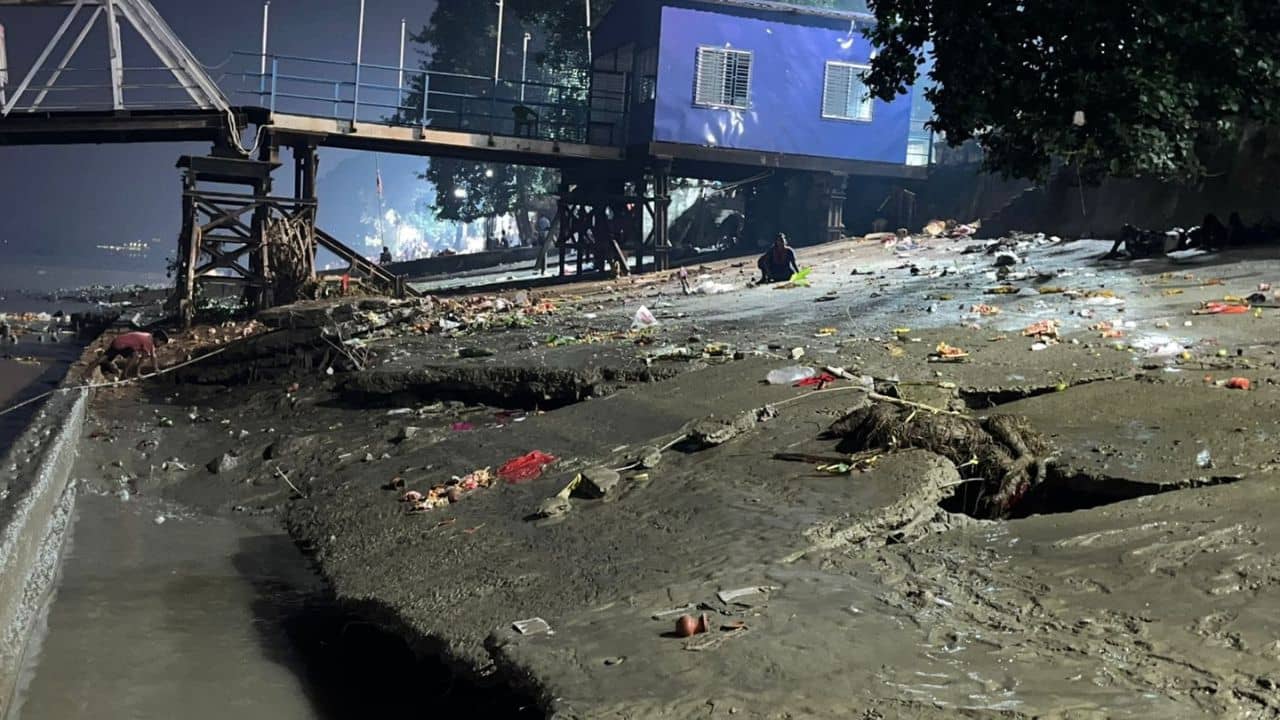 জানা গিয়েছে, শুক্রবার রাত্রিবেলা গঙ্গার স্রোতে ভেসে গিয়েছে নিমতলা ঘাটের একাংশ। ফলত, গঙ্গার গ্রাসে তলিয়ে যাওয়ার আতঙ্ক বাড়ছে নিমতলা-বাগবাজার সহ একাধিক এলাকায়। শুধু তাই নয়, এমনকী নিমতলা ঘাটে রবিঠাকুরের সমাধিক্ষেত্র ঘিরে বাড়ছে উদ্বেগ। সেটিও কার্যত বিপদসীমার মধ্যে। হাওড়ার দিকে প্রবল পলি জমায় বদল হয়েছে স্রোতের গতিপথ। দাবি কলকাতার মেয়র ফিরহাদ হাকিমের। গঙ্গার স্রোত এসে বারবার ধাক্কা দিচ্ছে কলকাতার দিকের পাড়গুলিতে। আর এর জেরে পাড় ভাঙয় বাড়ছে বিপদ। চিন্তায় প্রশাসন।