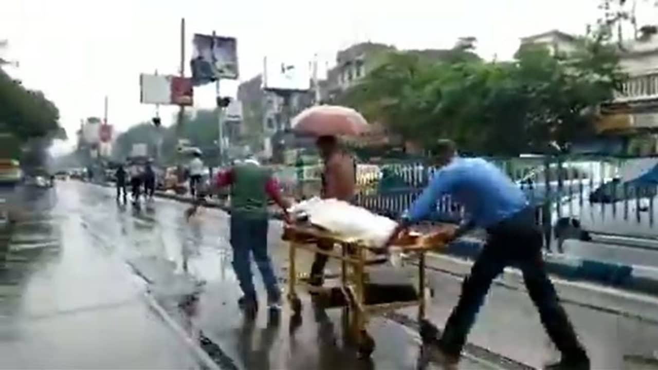 সূত্রের খবর, এনআরএস হাসপাতালের পুরুষ মেডিসিন বিভাগে ভর্তি ছিলেন ওই রোগী। তাঁকে নিয়ে যাওয়া হচ্ছিল কিছু দূরেই অবস্থিত মৌলালির স্টুডেন্টস হেল্থ হোমে। সেখানে ওই রোগীকে চেস্ট মেডিসিন ওয়ার্ডে নিয়ে যাওয়া হচ্ছিল বলে খবর হাসপাতাল সূত্রে। কিন্তু নিয়ে যাওয়ার জন্য অ্যাম্বুলেন্স না মেলায় বৃষ্টি মাথায় করে স্ট্রেচারে টেনে রাস্তার উপর দিয়েই নিয়ে যাওয়া হয়। যেই ভিডিয়ো ভাইরাল হওয়ার পর প্রশ্ন উঠতে শুরু করে, ঠিক কোথায় দাঁড়িয়ে রাজ্যের স্বাস্থ্য ব্যবস্থা!