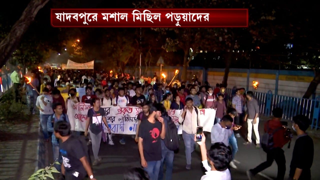 মশাল মিছিলে সামিল যাদবপুরের পড়ুয়ারা