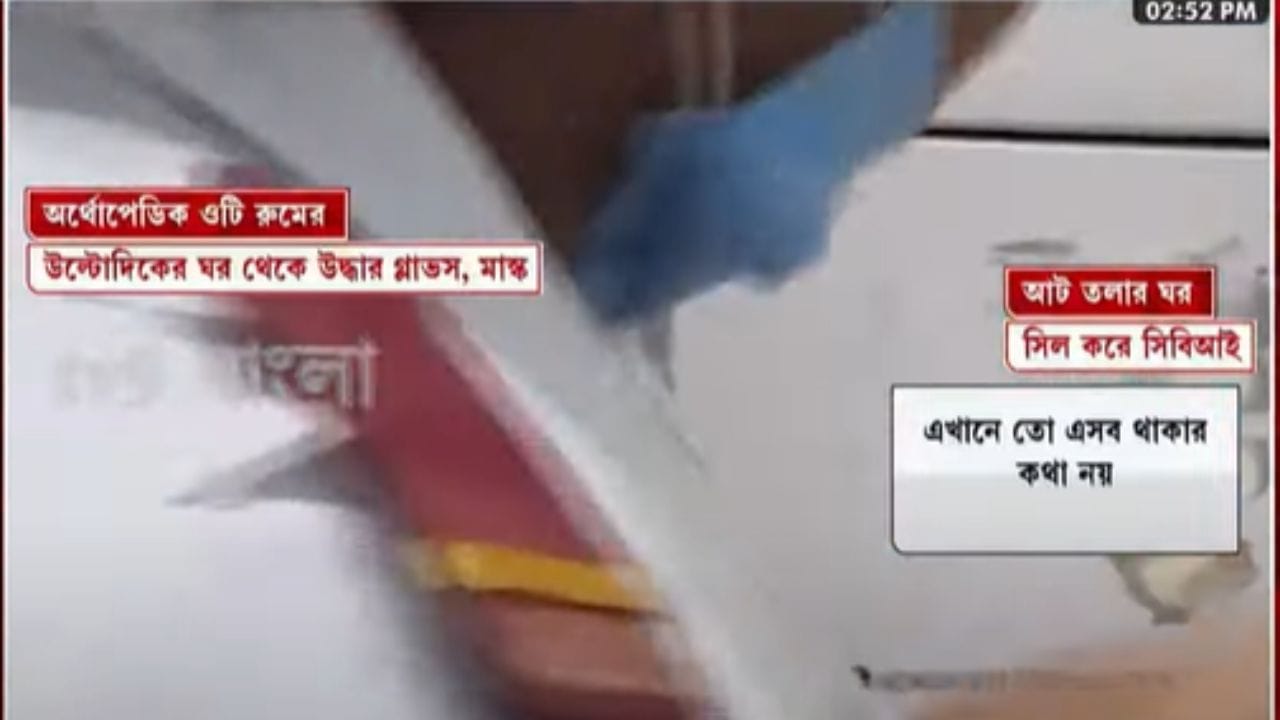 ভিডিয়োতে দেখা যাচ্ছে, ওটি রুমের উল্টোদিকের ঘরের ভিতরে রয়েছে গ্লাভস, মাস্ক, সার্জারির ছুরি। সেগুলো সেখানে কীভাবে এল? মেঝেতেও রয়েছে রক্তের গাঢ় দাগ। ওই রুমে যে মেশিনও রয়েছে, তা কোনও শারীরিক পরীক্ষার জন্য ব্যবহৃত হলে, তাতে রক্ত বেরনোর কোনও অবকাশ নেই। তবে সিবিআই-এর তরফ থেকে ঘর সিল করে দেওয়া হয়েছে।