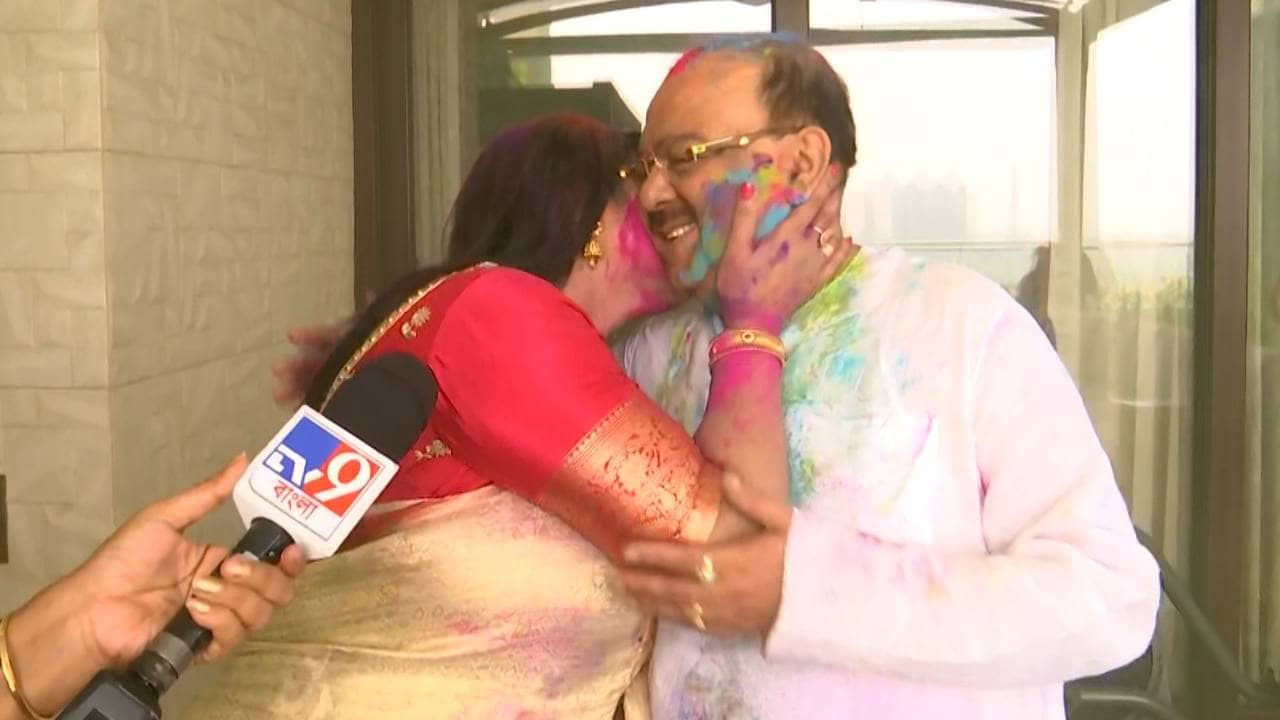 কলকাতা: এমনিতেই রঙিন জুটি তাঁরা। দোলের দিন আরও একটু রঙিন না হলেই যে নয়। সোমবার নানা রঙের আবিরে তাই নিজেদের রাঙিয়ে তুললেন শোভন চট্টোপাধ্যায় ও বৈশাখী বন্দ্যোপাধ্যায়। শোভনের গালে রঙ মাখিয়ে এবং তাঁর হাত থেকে রঙ নিয়ে বৈশাখী বললেন, “আমার এখনকার বসন্ত অনেক বেশি রঙিন। আগে বিবর্ণ ছিল। শোভন আমার জীবনে ভালবাসার রঙের ছোঁয়া দেওয়ার পর এই বসন্তগুলো অনেক বেশি রঙিন।”