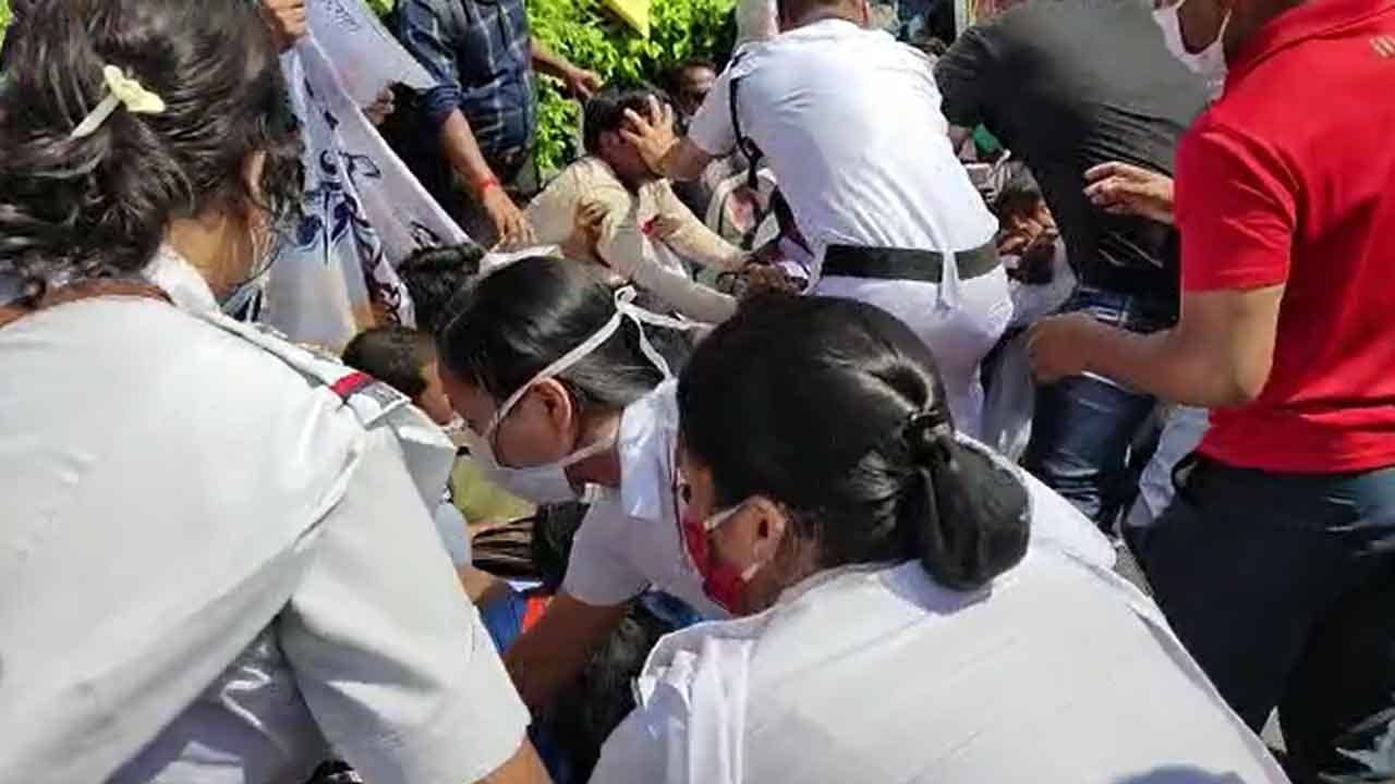পুলিশ কর্মীদের সঙ্গে ধস্তাধস্তিতে বেশ কয়েক জন রাস্তায় পড়ে যান। তিনটি বাস, চারটি প্রিজন ভ্যানে আন্দোলনকারীদের তুলতে গিয়ে নাস্তানাবুদ হন পুলিশকর্মীরা। একবার আন্দোলনকারীদের বাসে তোলা হচ্ছে। চিত্রটা এমন… আবার পুলিশের হাত ছাড়িয়ে তাঁরা অবস্থান বিক্ষোভে বসে পড়ছেন! একসময় চ্যাংদোলা করে আন্দোলনকারীদের গাড়িতে তুলতে থাকেন পুলিশকর্মীরা। আধ ঘণ্টারও বেশি সময় ধরে এই পরিস্থিতি চলতে থাকায় নিয়োগপ্রার্থীদের অনেকে অসুস্থ হয়ে রাস্তাতেই শুয়ে পড়েন। কেউ কেউ অচৈতন্য হয়ে পড়েন।