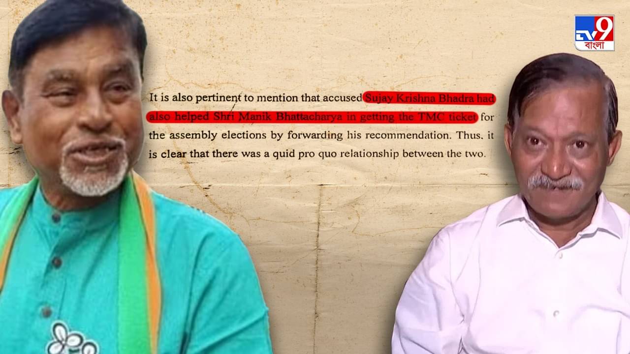 ইডি-র চার্জশিট অনুযায়ী, একদিকে যেমন তিনি মানিক ভট্টাচার্যকে বিধায়ক হতে সহযোগিতা করেছেন, পরোক্ষে আবার অভিষেক বন্দ্যোপাধ্যায়ের সঙ্গে তাঁর সম্পর্ক বুঝিয়ে দেওয়ার চেষ্টা করেছেন। ইডি চার্জশিটে উল্লেখ করেছে, সুজয় বলেছেন, তাঁর কাছে চাকরি প্রার্থীরা কেউ সরাসরি আসতেন, কেউ বা নেতার মাধ্যমে চিঠি পাঠাতেন। ইডি-র দাবি, চাকরিপ্রার্থীরা জানতেন সুজয়কৃষ্ণর সঙ্গে অভিষেকের সম্পর্ক কেমন, সেই কারণেই তাঁরা কাকুর দ্বারস্থ হতেন সমস্যার সমাধানের জন্য।
