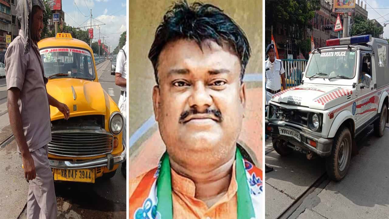 ব্যস্ততম রাজপথ দিয়ে যাওয়ার সময়ই একটি হলুদ ট্যাক্সিকে সজোরে ধাক্কা মারে বেচারাম মান্নার কনভয়ের পাইলট কারটি। ধাক্কাটি এতটাই জোরে ছিল যে ট্যাক্সির ডানদিকের সামনে অংশটি দুমড়ে-মুচড়ে যায়। স্থানীয় সূত্রে খবর, ট্যাক্সি চালকের মাথায় ও হাঁটুতে চোট লেগেছে।