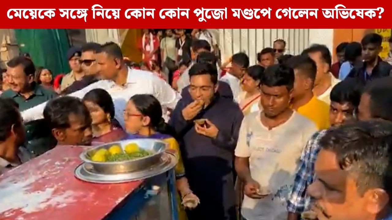 নাগেরবাজারে জপুর জয়শ্রী পুজো মণ্ডপ পরিদর্শন করেন অভিষেক। এ বছর এই পুজো মণ্ডপের থিম ‘ভিনরাজ্যে হেনস্থার মুখে বাঙালি পরিযায়ী শ্রমিকরা’। এই পুজো মণ্ডপে অভিষেকের সঙ্গে দেখা যায় দমদমের বর্ষীয়ান সাংসদ সৌগত রায়কে। ছিলেন পানিহাটির বিধায়ক নির্মল ঘোষ, রাজারহাট গোপালপুর বিধানসভার বিধায়ক অদিতি মুন্সি। সেখানে উপস্থিত পরিযায়ী শ্রমিকদের সঙ্গে কথা বলেন। তাঁদের হাতে উপহার তুলে দেন। এই পুজো মণ্ডপ থেকে বেরিয়ে মেয়েকে সঙ্গে নিয়ে ফুচকা খান অভিষেক। হাতে শালপাতা নিয়ে জমিয়ে ফুচকা খেতে দেখা যায় তাঁকে। এরপর বাগুইআটি বন্ধুমহল সঙ্ঘের পুজো মণ্ডপে যান তৃণমূলের সর্বভারতীয় সাধারণ সম্পাদক।