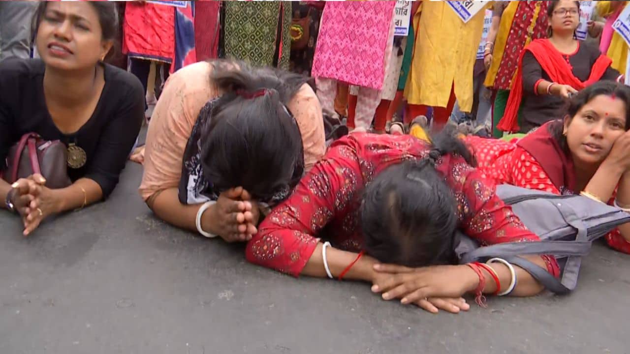 কলকাতা: রাজপথে ফের চাকরিপ্রার্থীরা। নিয়োগের দাবি তুলে রাস্তায় মাথা ঠুকলেন তাঁরা। এক বছর ধরে শহিদ মিনারে বসে আছেন আপার প্রাইমারির চাকরি প্রার্থীরা। তাঁদের প্রশ্ন, “শিক্ষক হতে চাওয়া কি অপরাধ?” নিয়োগের দাবিতে এদিন ডরিনা ক্রসিং থেকে ওয়াই চ্যানেল পর্যন্ত মিছিল করেন উচ্চ প্রাথমিকের এই চাকরি প্রার্থীরা। এরপরই মাঝরাস্তায় বসে পড়েন তাঁরা। পিচের রাস্তায় শুয়ে পড়েন মহিলা চাকরি প্রার্থীরা। মাথা ঠুকতে থাকেন, মুখে প্রশ্ন “এতদিন হয়ে গেল। এবার তো চাকরিটা হোক।”