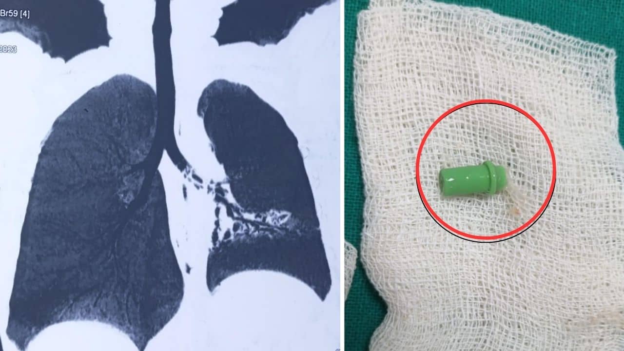 এসএসকেএমের স্পেশালিস্ট মেডিক্যাল অফিসার মৈনাক মৈত্র বলেন, “পেশেন্ট যখন প্রথম আমাদের কাছে আসে বলা হয় দেড় মাস ধরে ওর সর্দিকাশি কমছে না। পেশেন্টের থোরাক্সের সিটি স্ক্যান করাই। তাতে দেখি বাঁ দিকে ফুসফুসের কিছুটা অংশ কোলাপ্স হয়। আমাদের সন্দেহ হয়, কোনও ফরেন বডি সেখানে আছে। এরপর ভর্তি করি ব্রঙ্কোস্কপি করার জন্য। তাতেই দেখা সবুজ রঙের প্লাস্টিকের রাবারের ফরেন বডি। সেটা বের করা হয়েছে। এখন ও স্থিতিশীল।”