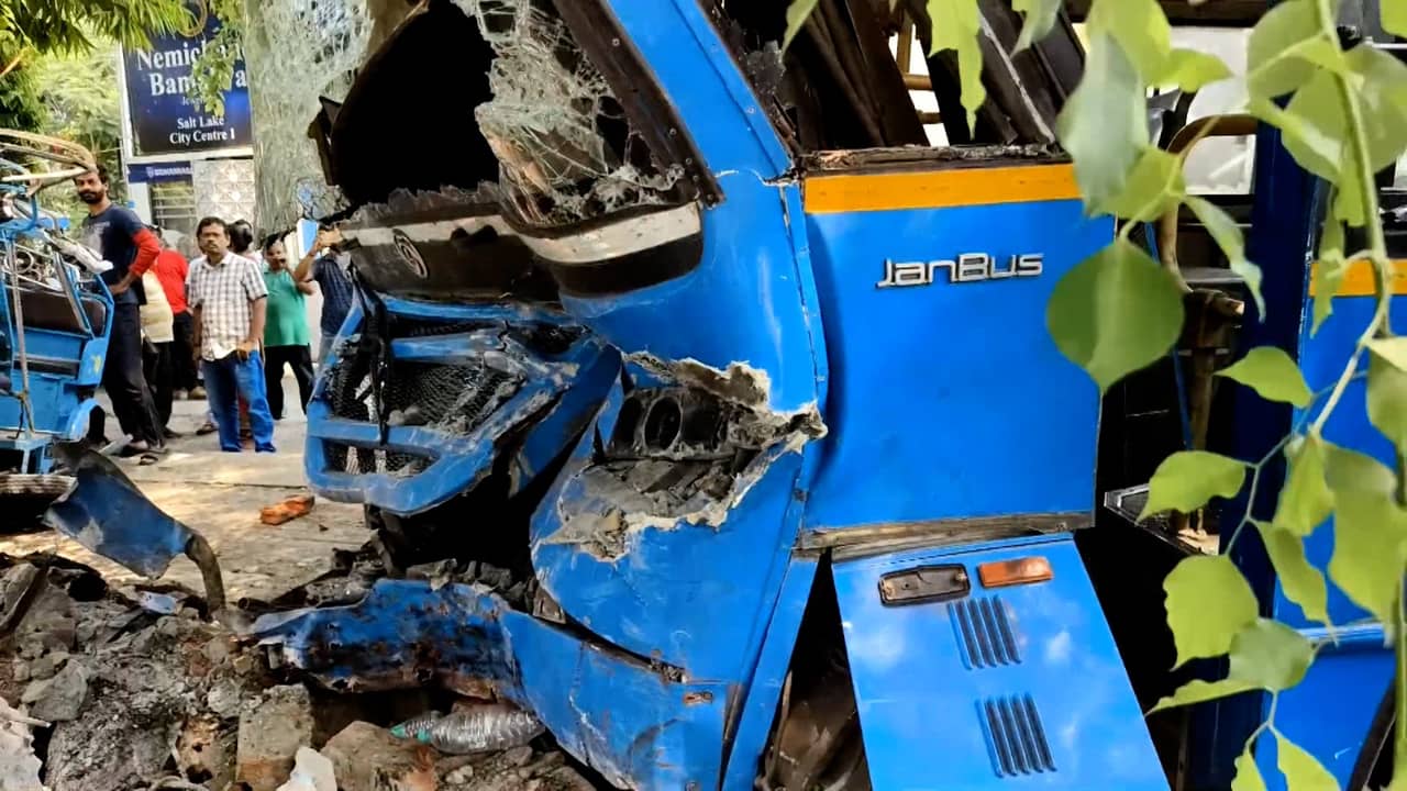 কলকাতা: সল্টলেকে (Saltlake) ভয়াবহ পথদুর্ঘটনা। দুর্ঘটনায় মৃত্যু হল একজনের। বেপরোয়া গতির জেরে এই দুর্ঘটনা ঘটে বলে অভিযোগ। আইল্যান্ডে ঘোরার সময় বাসটি দুর্ঘটনার কবলে পড়ে। সল্টলেকের জিসি কমিউনিটি হলের সামনে এই দুর্ঘটনায় একজনের মৃত্যু হয়েছে। দুমড়ে মুচড়ে গিয়েছে বাসের সামনের অংশ। এদিন যাদবপুর এইটবি-করুণাময়ী রুটের S9 বাসটি একটি গাছে গিয়ে ধাক্কা মারে। আহত হন ৮-১০ জন। বৃন্দাবন প্রধান নামে এক রিকশা চালকের মৃত্যু হয়। শনিবার সকাল সাড়ে ১১টা থেকে পৌনে ১২টা নাগাদ ঘটনাটি ঘটে। যাদবপুর থেকে করুণাময়ীর দিকে আসছিল বাসটি। আইল্যান্ডে ঘোরার সময় সেখানে থাকা একটি রিক্সা স্ট্যান্ডে উঠে পড়ে বাসটি। এরপরই ফুটপাথে উঠে একটি গাছে ধাক্কা মারে। আহতদের উদ্ধার করে হাসপাতালে নিয়ে যাওয়া হলে একজনকে মৃত বলে ঘোষণা করা হয়। একজনের অবস্থা আশঙ্কাজনক। কয়েকজনকে বিধাননগর মহকুমা হাসপাতাল ও কয়েকজনকে বাইপাসের ধারে বেসরকারি হাসপাতালে নিয়ে যাওয়া হয়।