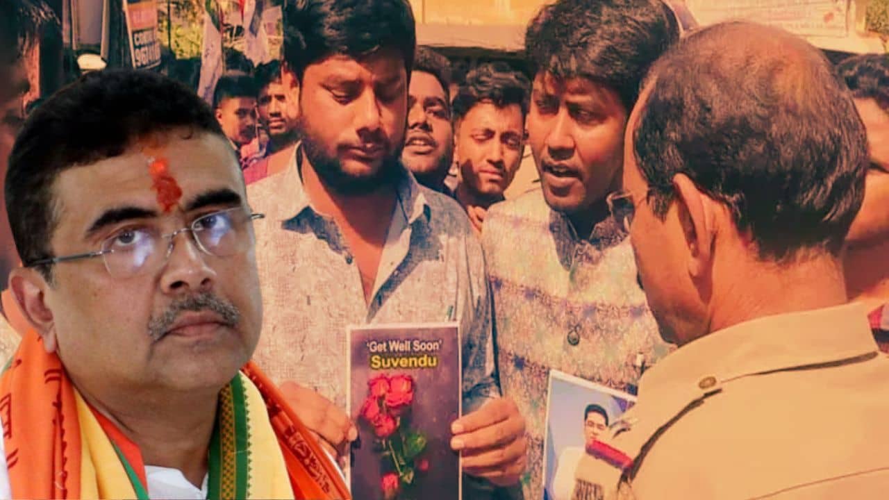 শুভেন্দু অধিকারীর একটি টুইট প্রসঙ্গে দু’দিন আগেই তৃণমূল মুখপাত্র কুণাল ঘোষ বলেছিলেন, শুভেন্দু মানসিকভাবে সুস্থ নেই। তাঁর আরোগ্য কামনা করে চিঠি পাঠানো হবে। সেই কর্মসূচির নাম হবে ‘গেট ওয়েল সুন’। সেইমতোই সোমবার শুভেন্দুর কাঁথির বাড়ির সামনে তৃণমূল ছাত্র পরিষদের নেতারা। এদিকে তাঁদের মাঝপথে আটকে দেয় পুলিশ। তাতে সামান্য ধস্তাধস্তিও হয় বলে অভিযোগ ওঠে।